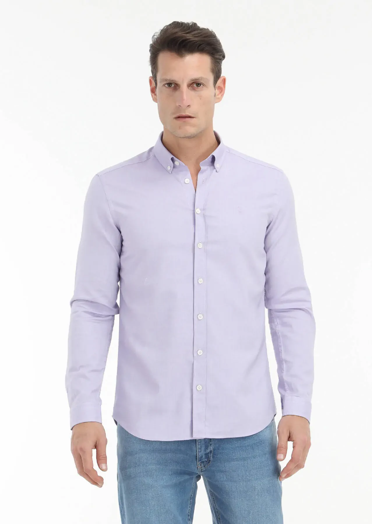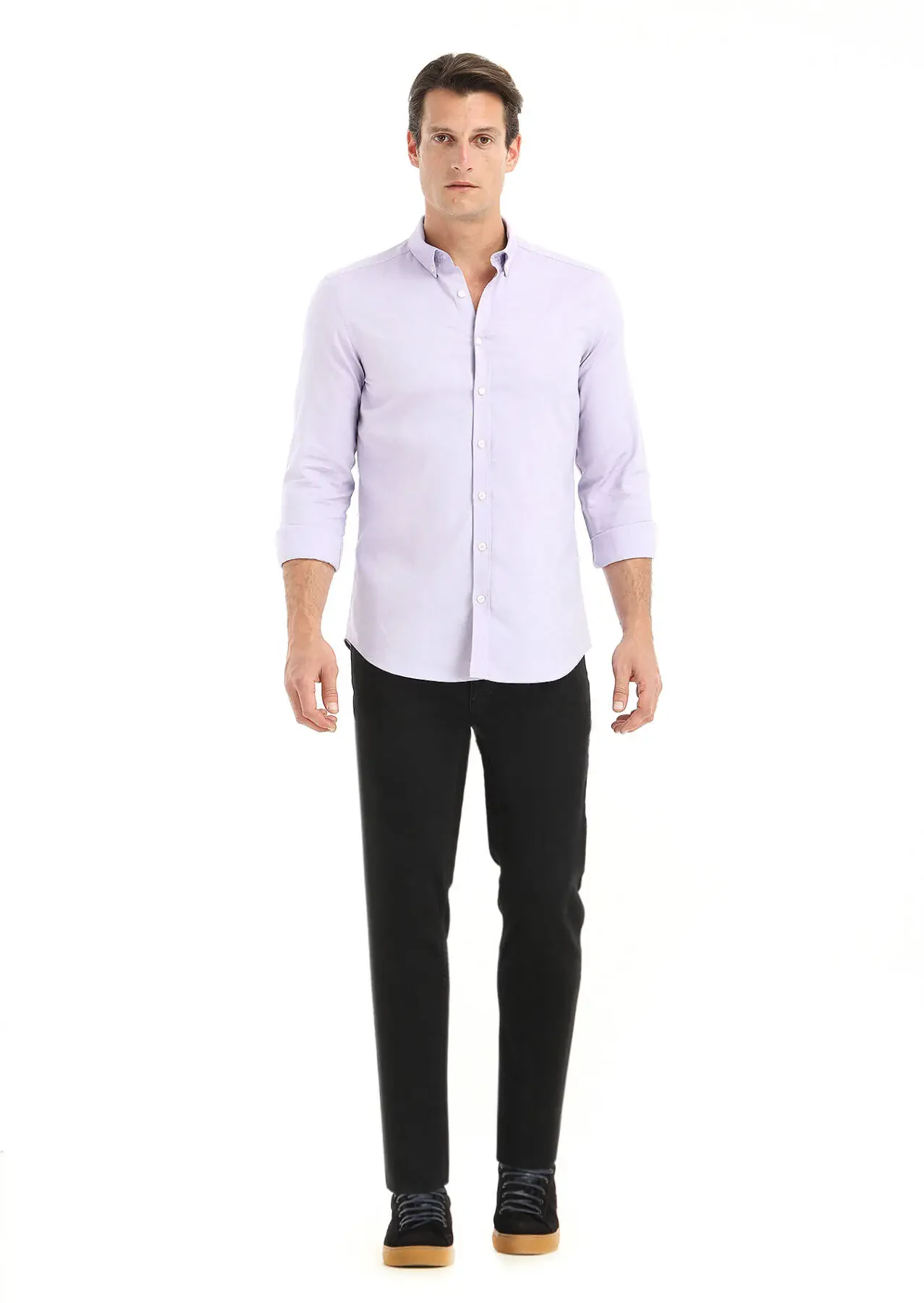Lila Düz Slim Fit Dokuma Casual %100 Pamuk Gömlek