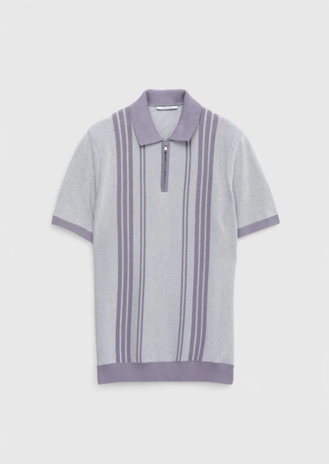 Lila Polo Yaka Çizgili Pamuk Karışımlı Triko - 1