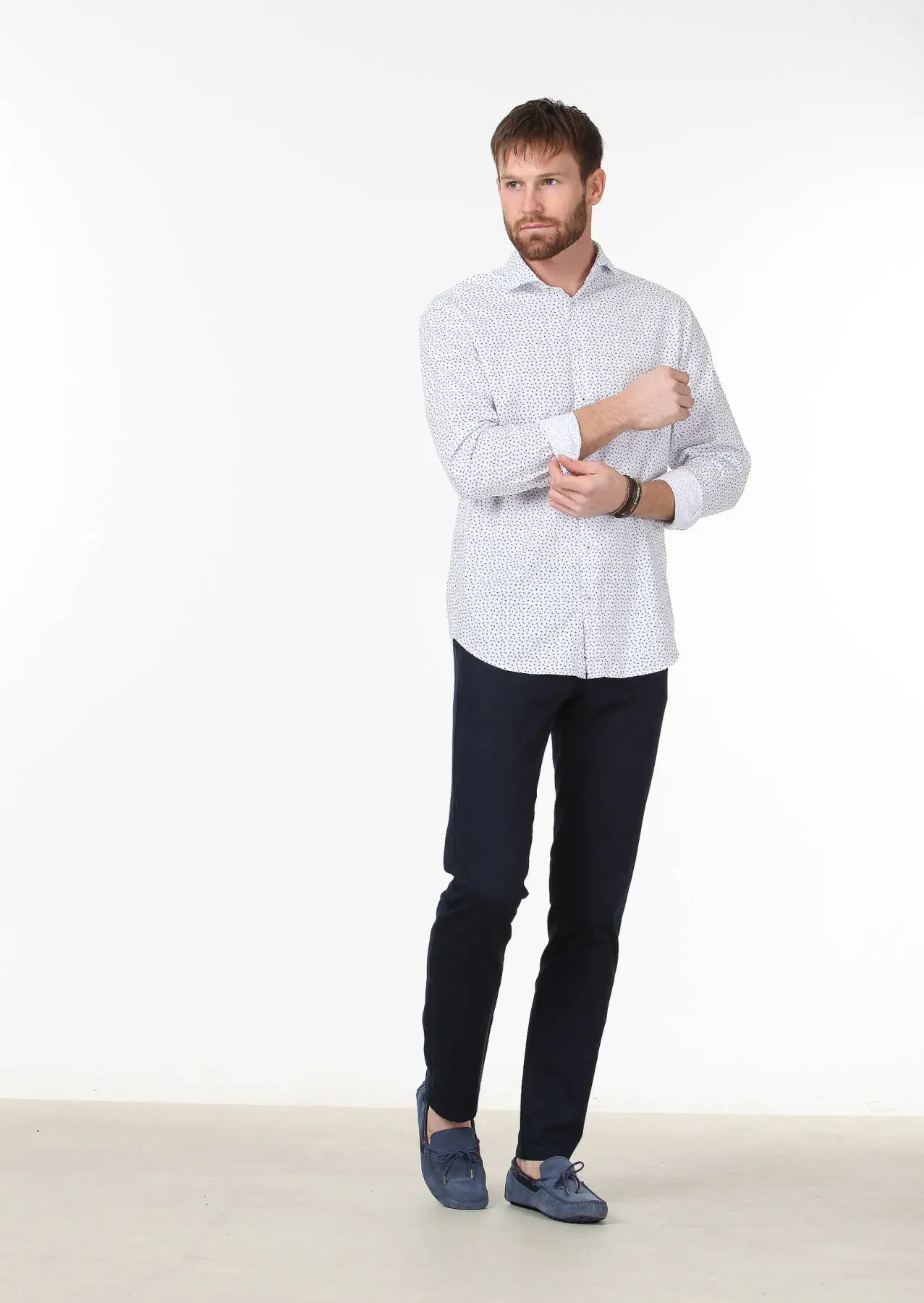 Blue Printed Regular Fit Weaving Casual 100% Cotton Shirt