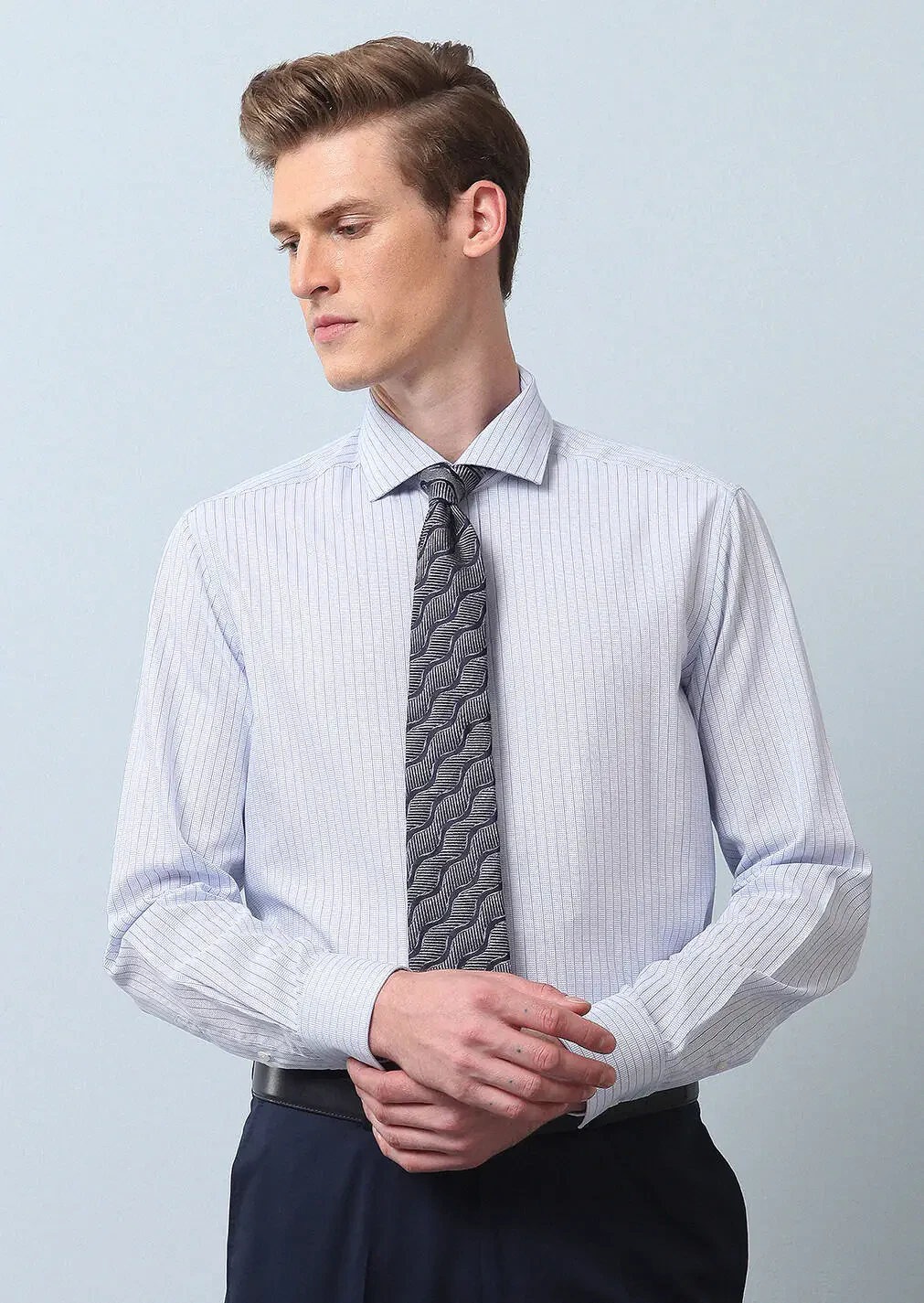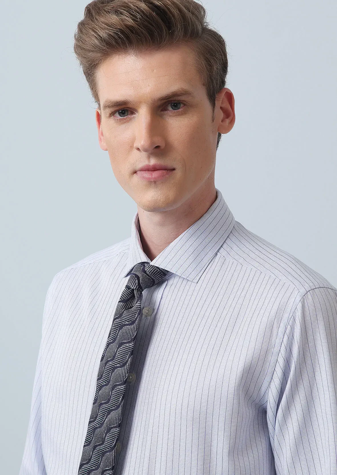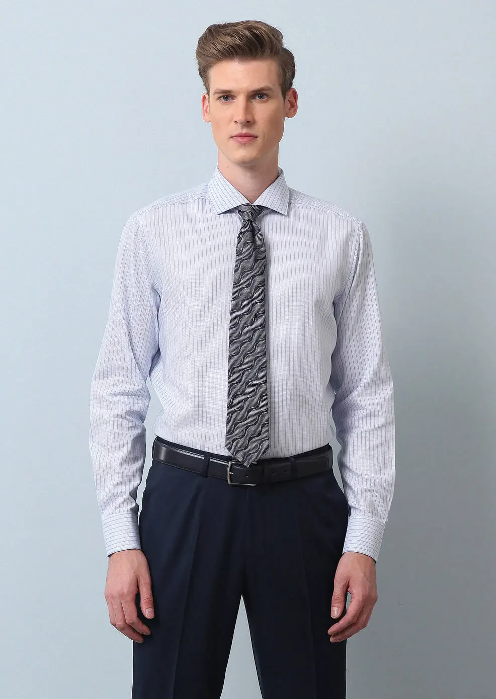 Blue Striped Regular Fit Weaving Classical 100% Cotton Shirt