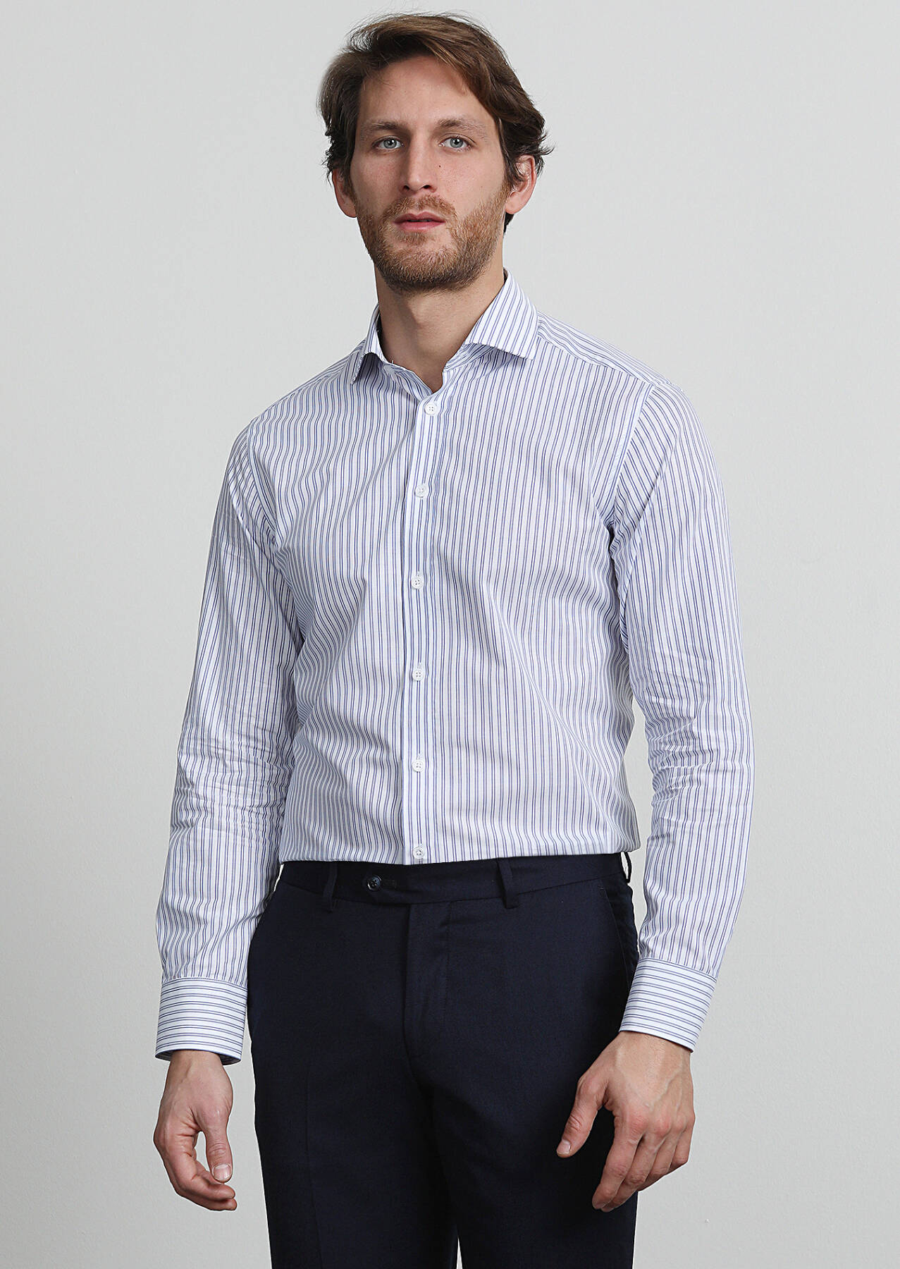 Mavi Çizgili Regular Fit Uzun Dokuma Klasik %100 Pamuk Gömlek