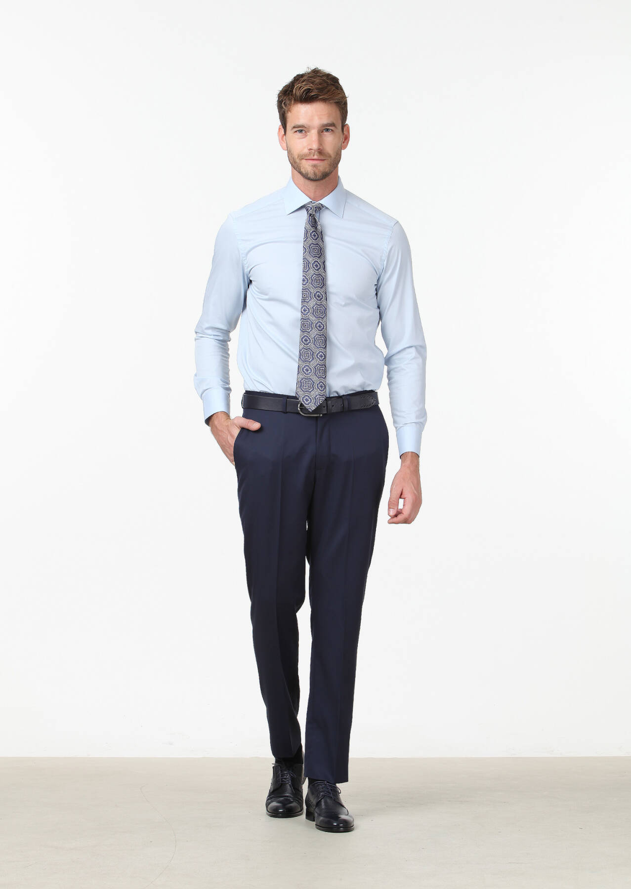 Mavi Düz Regular Fit Dokuma Klasik Pamuk Karışımlı Gömlek