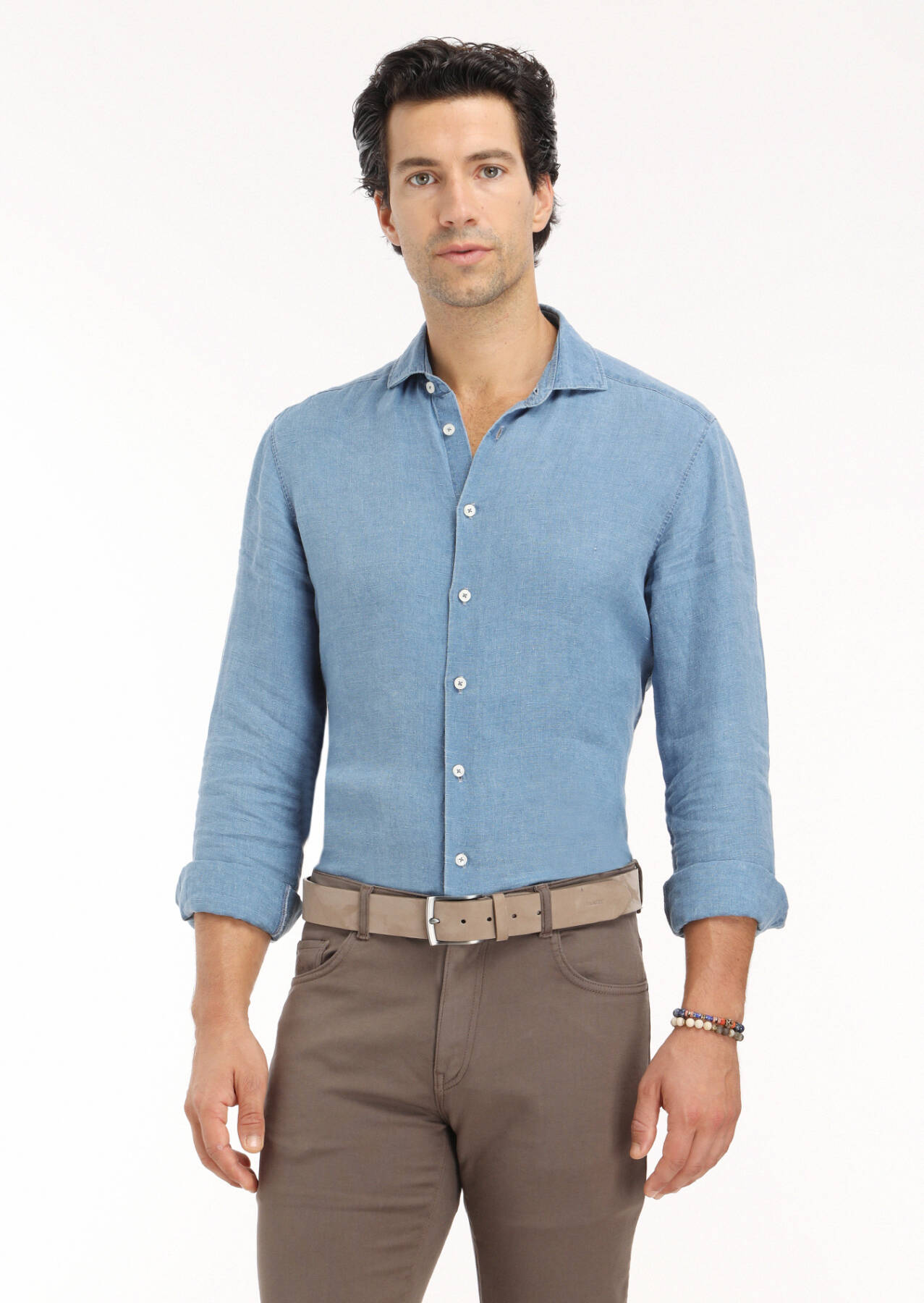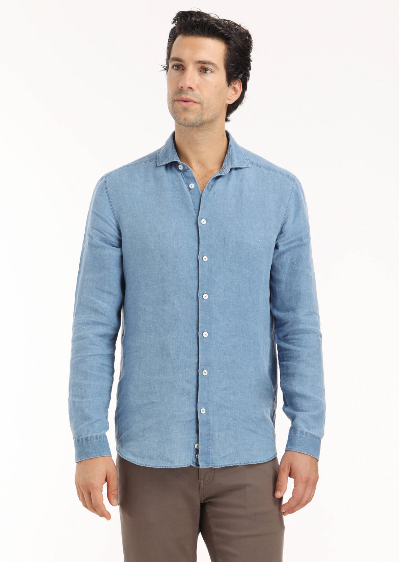 Mavi Düz Regular Fit Uzun Dokuma Casual Gömlek