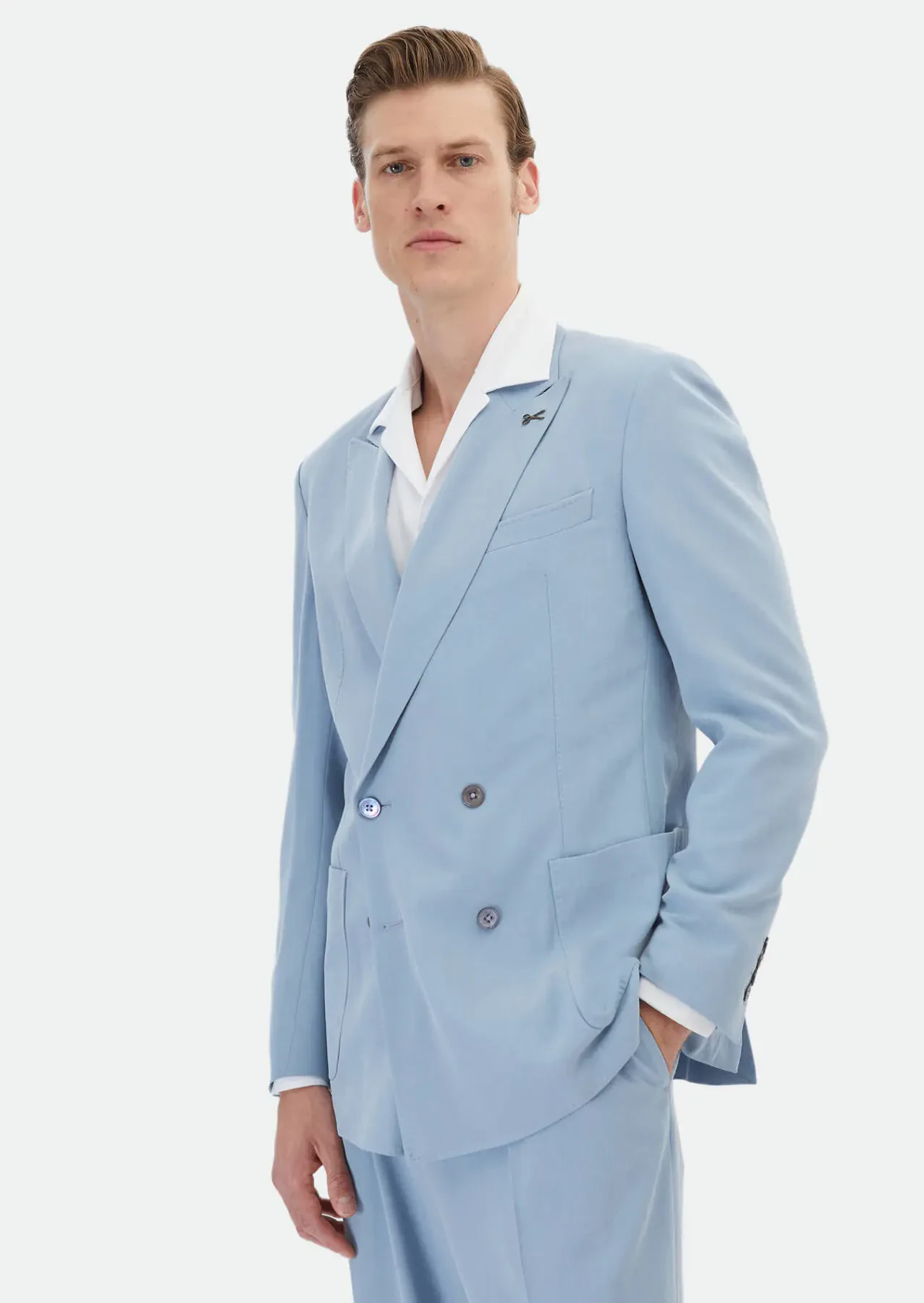 Mavi Düz Zeroweight Slim Fit Takım Elbise