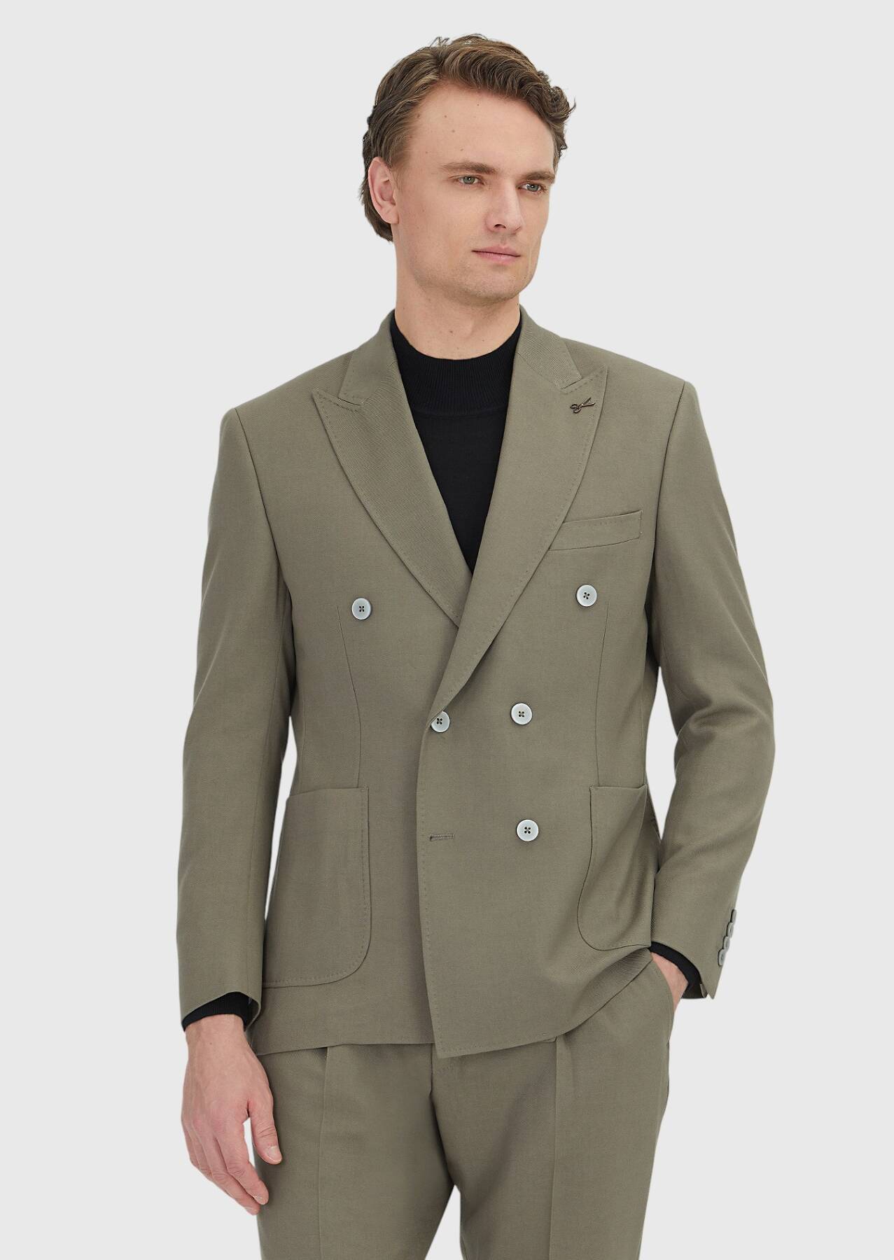 Model: Height: 187 cm, Chest: 98 cm, Waist: 78 cm, Hips: 96 cm, Size: 48