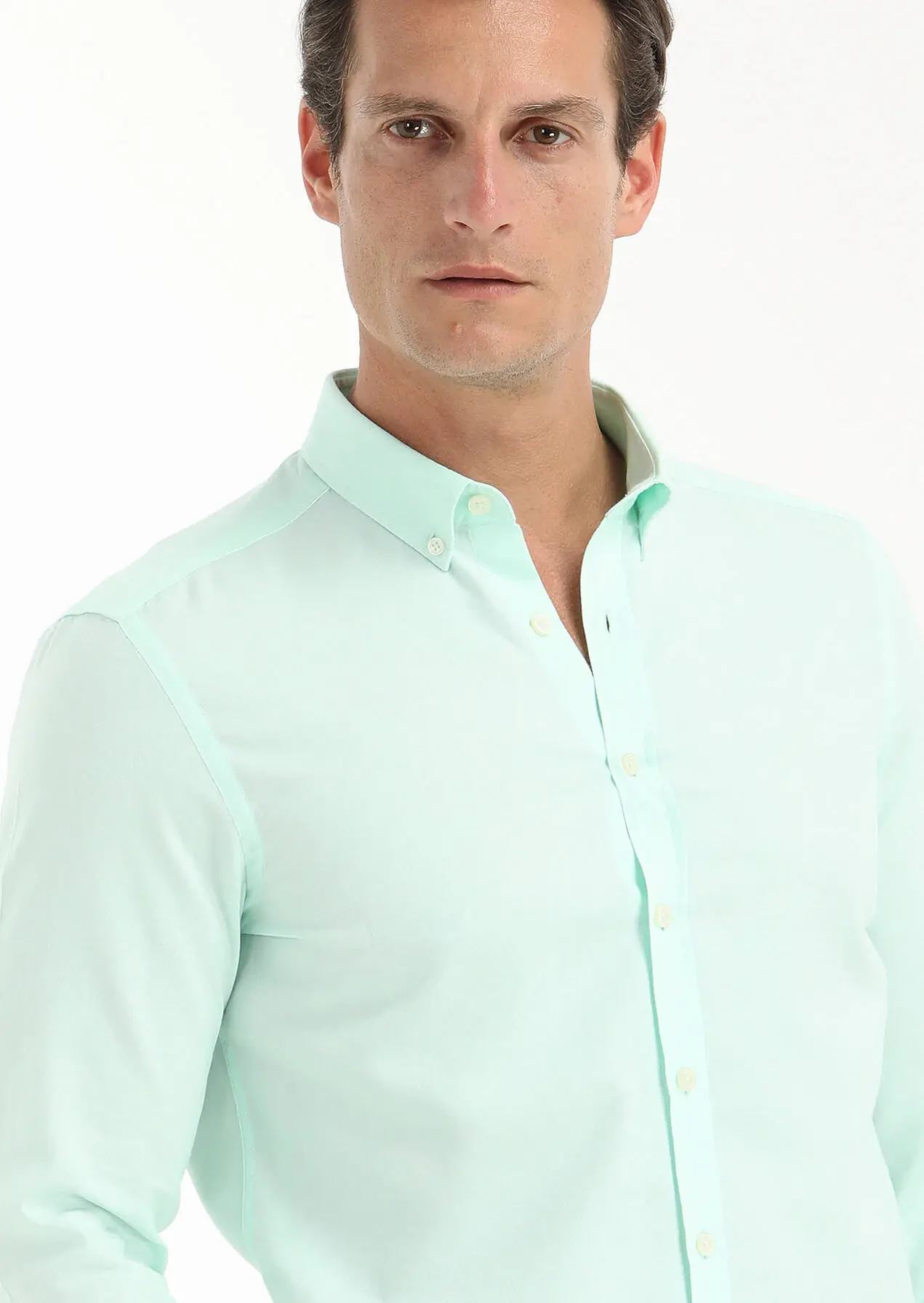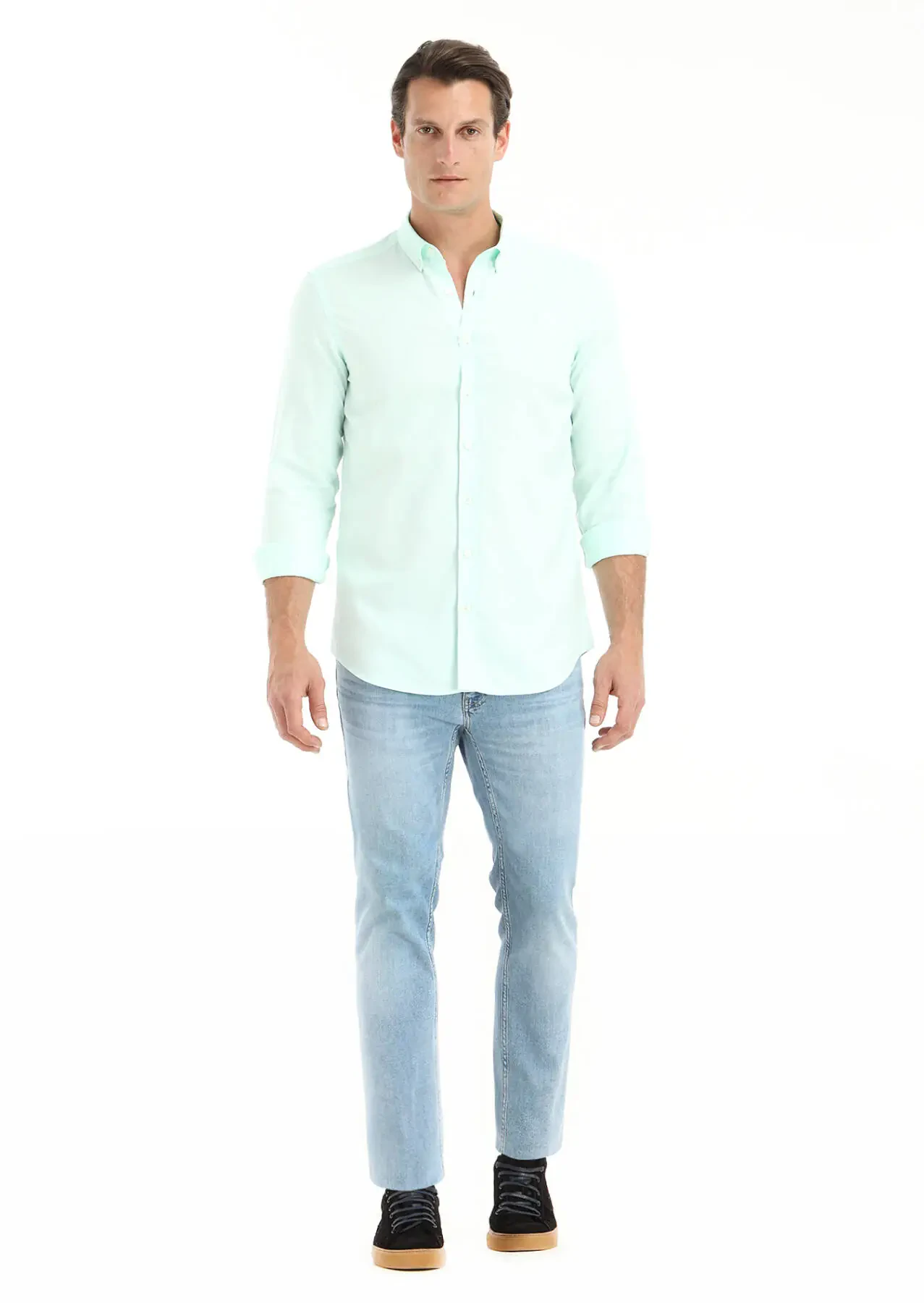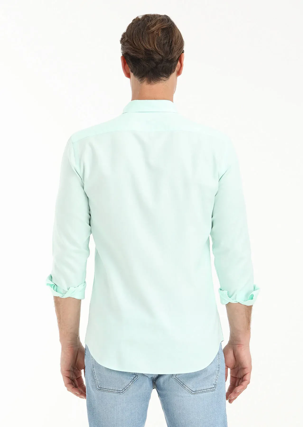 Mint Plain Slim Fit Weaving Casual 100% Cotton Shirt