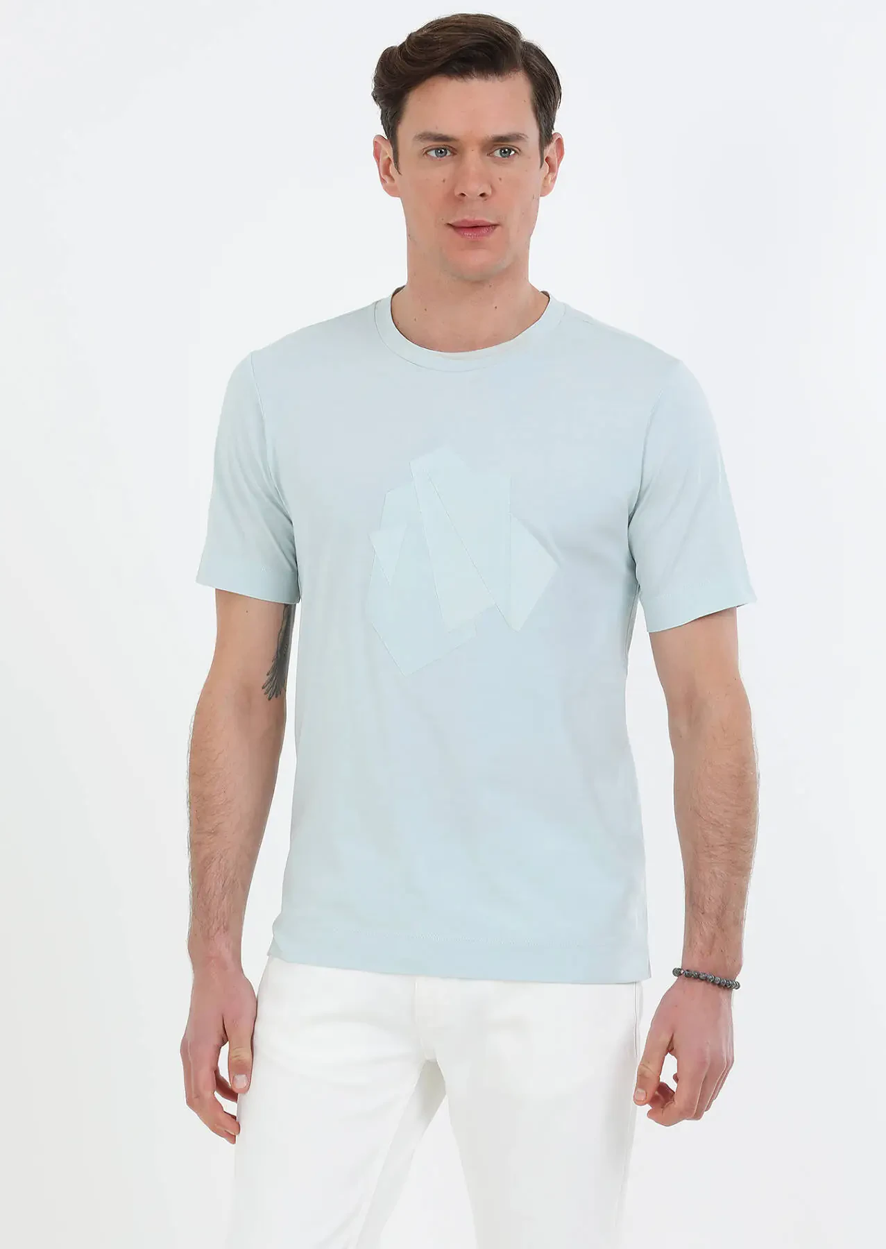 Mint Printed Crew Neck Cotton Blended T-Shirt