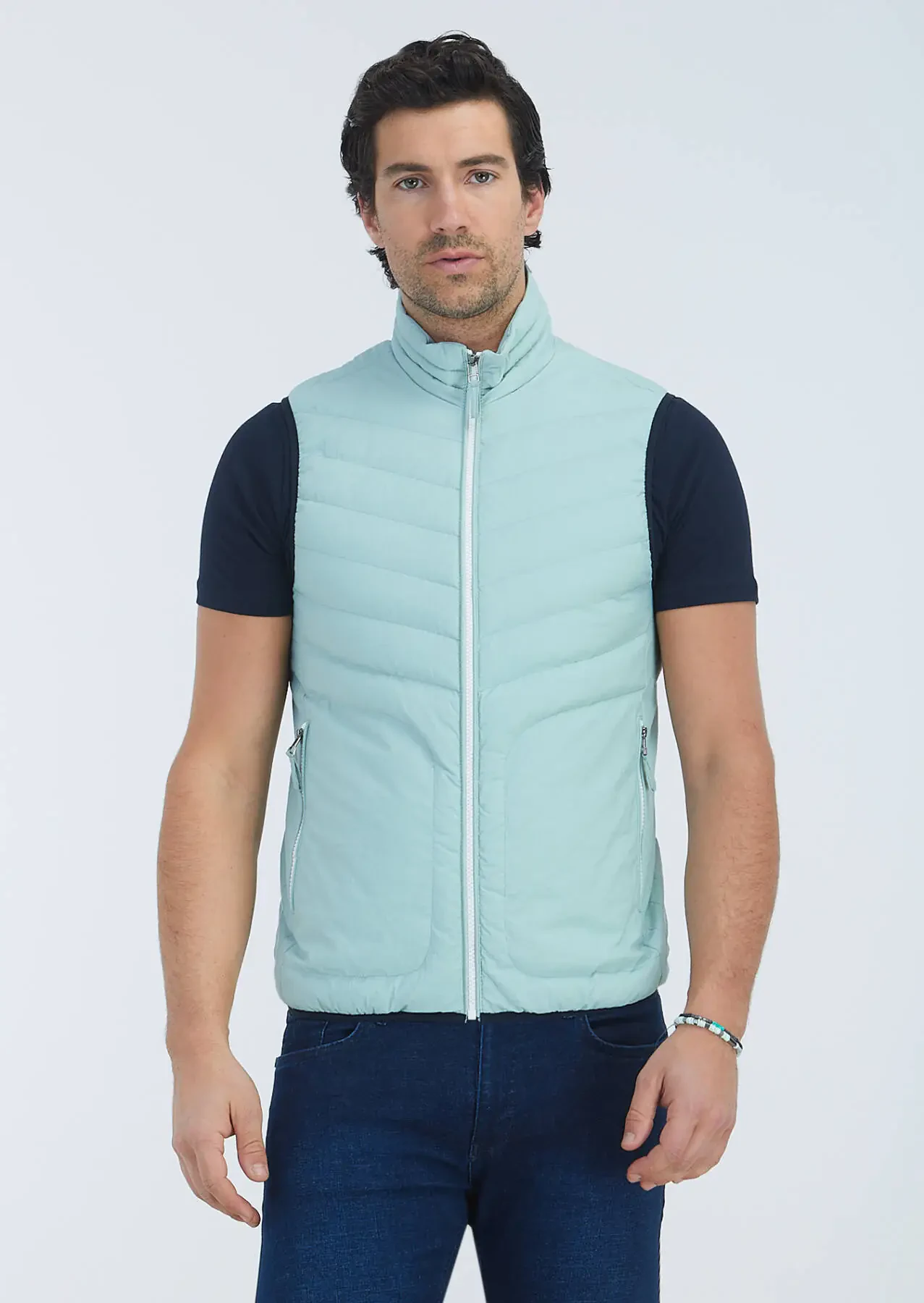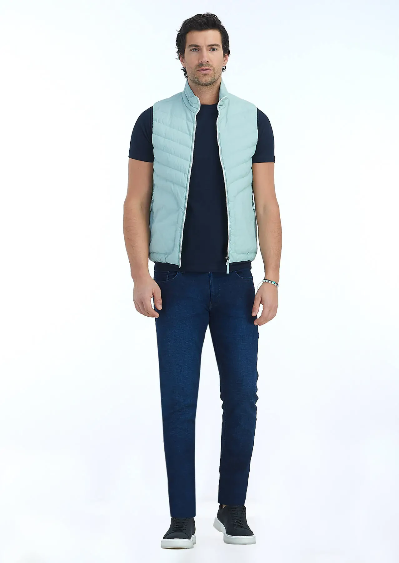 Mint Regular Fit Dik Yaka Casual Dokuma Spor Yelek