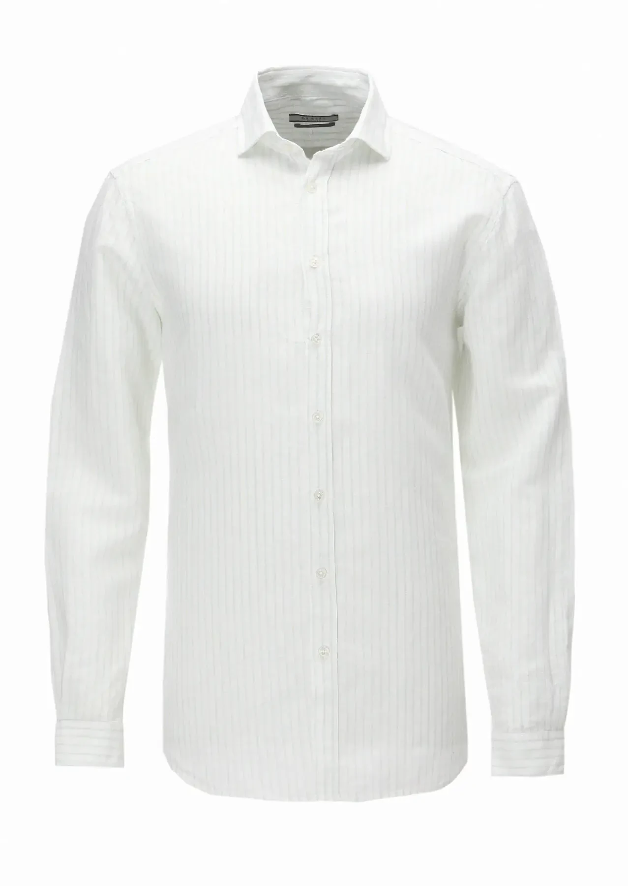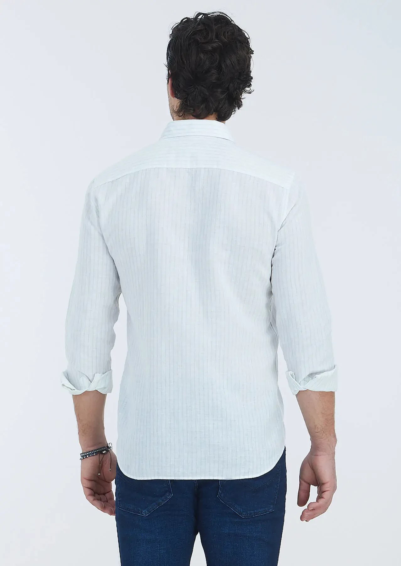Mint Striped Regular Fit Weaving Casual Cotton Blended Shirt