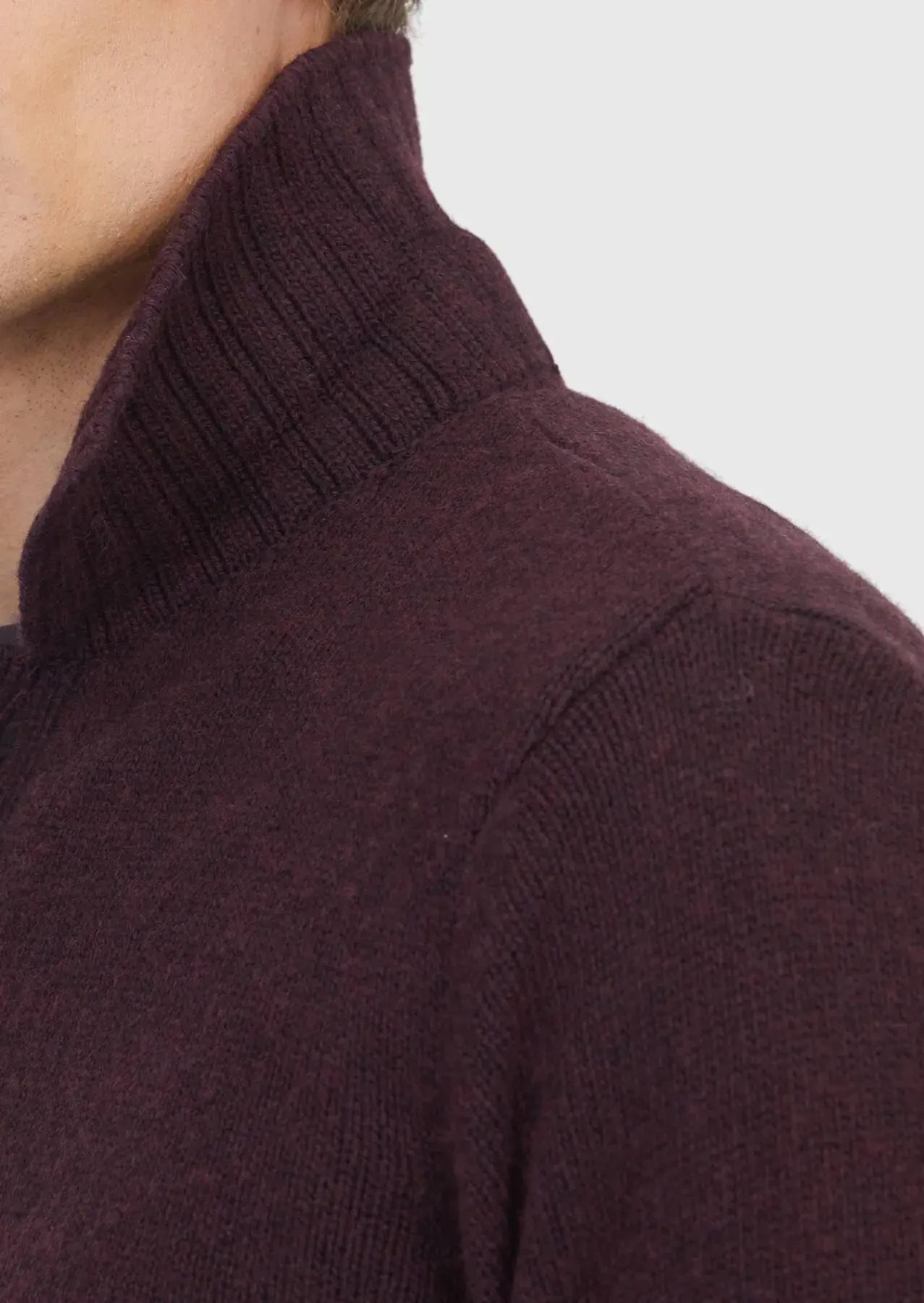 Mürdüm Polo Yaka Düz Örgü Yün Karışımlı Triko Kazak