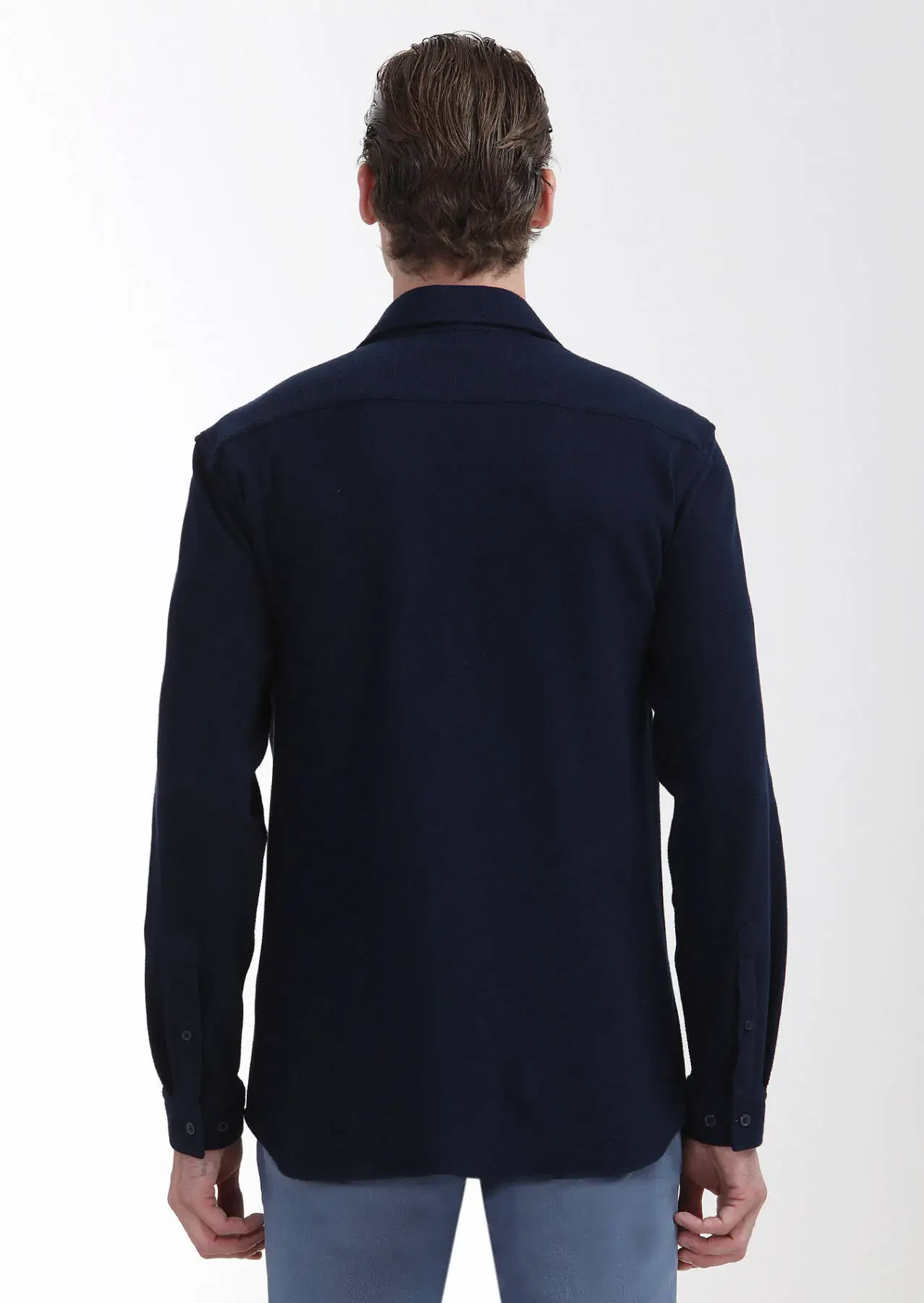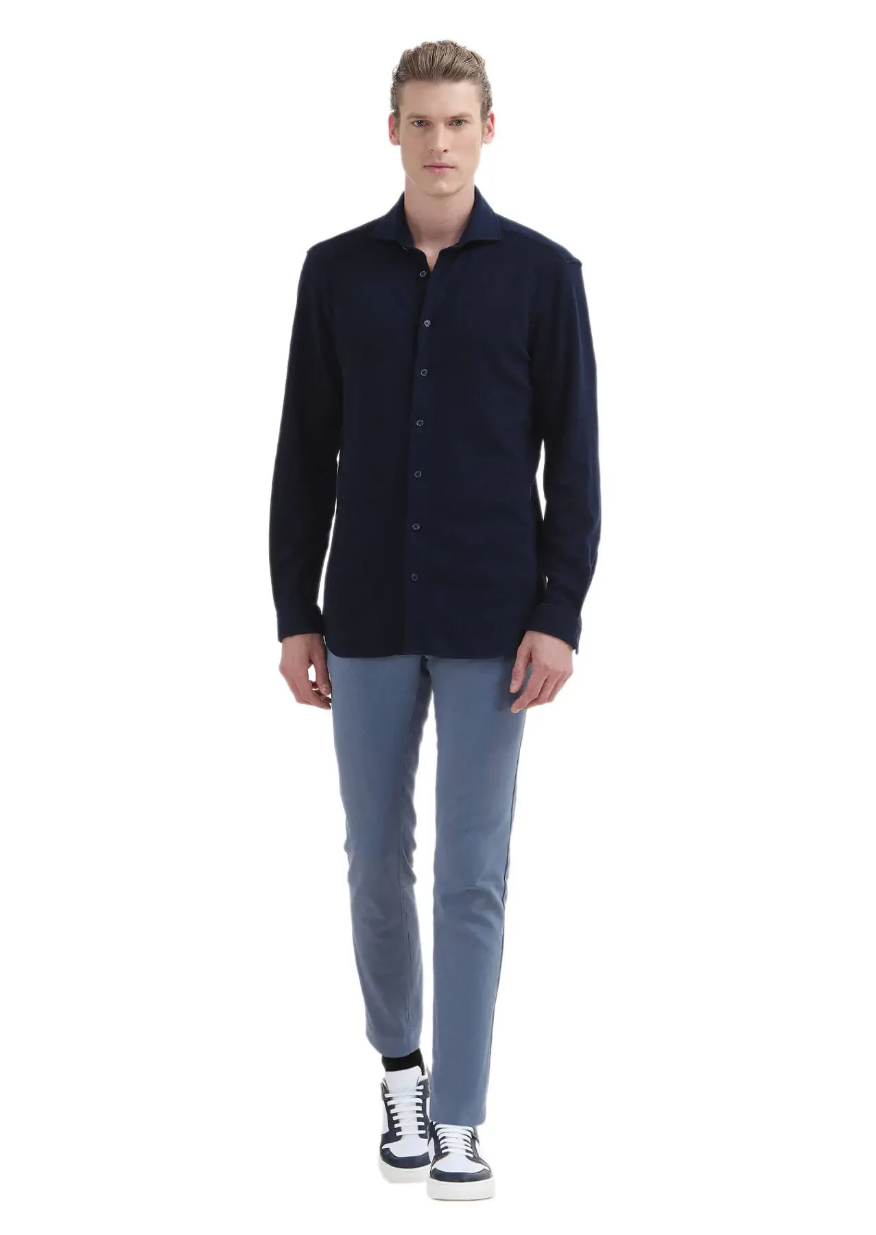 Navy Blue Micro Regular Fit Knitting Casual 100% Cotton Shirt