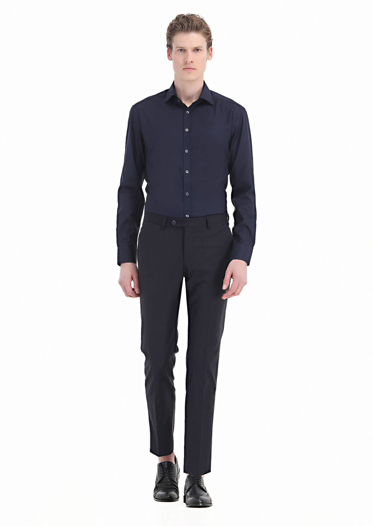 Navy Blue Patterned Regular Fit Weaving Classical 100% Cotton Shirt