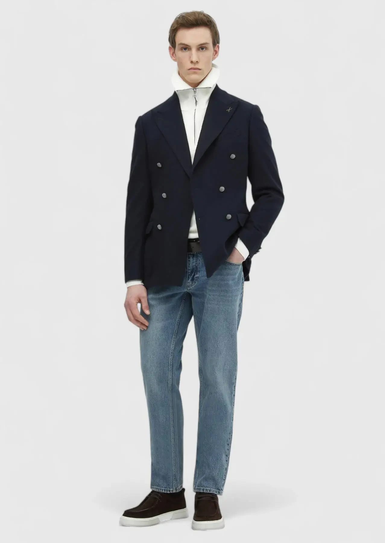 Model: Height: 188 cm, Chest: 98 cm, Waist: 80 cm, Hips: 95 cm, Size: 48