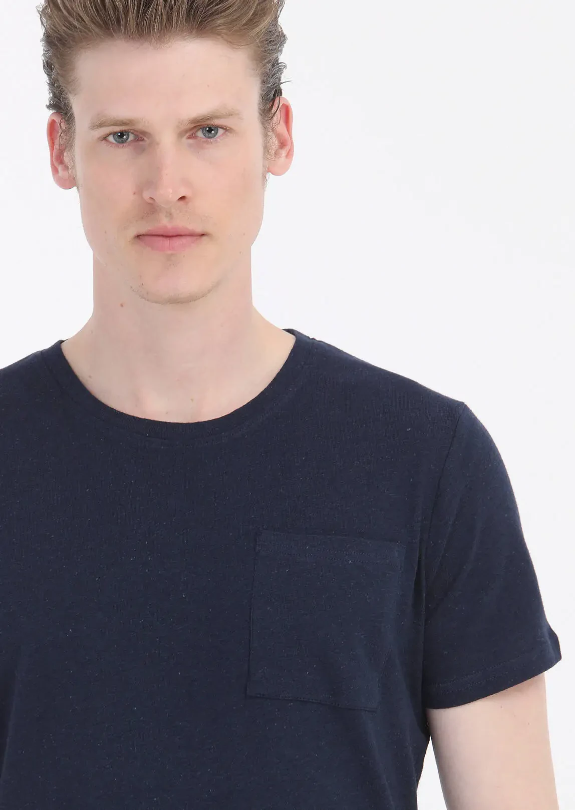 Navy Blue Plain Crew Neck 100% Linen T-Shirt