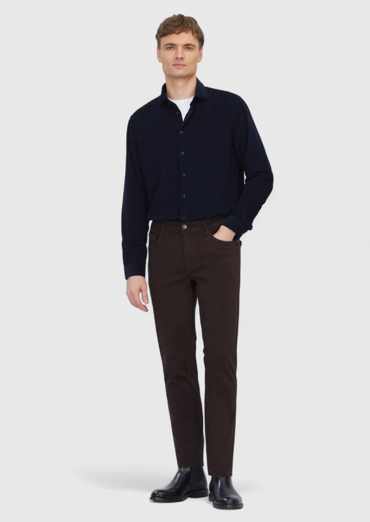 Navy Blue Plain Long Weaving Casual 100% Cotton Shirt
