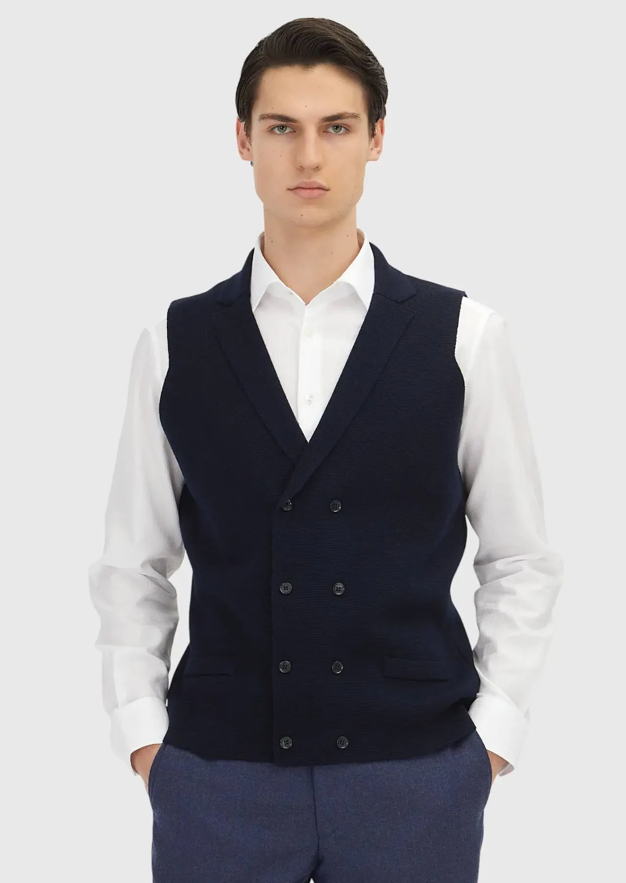 Navy Blue Regular Fit Butterfly Collar Casual Knitting Knit Vest