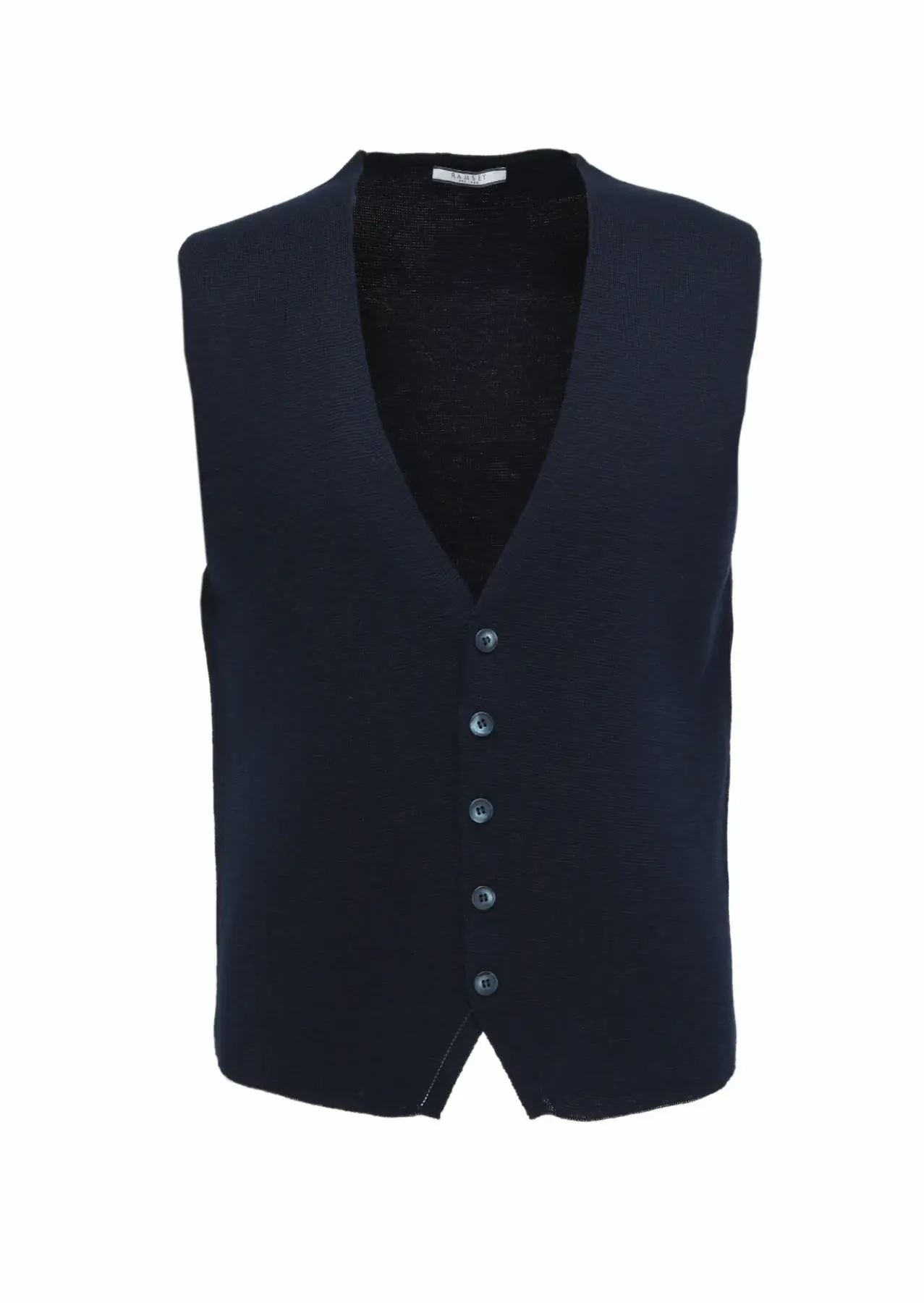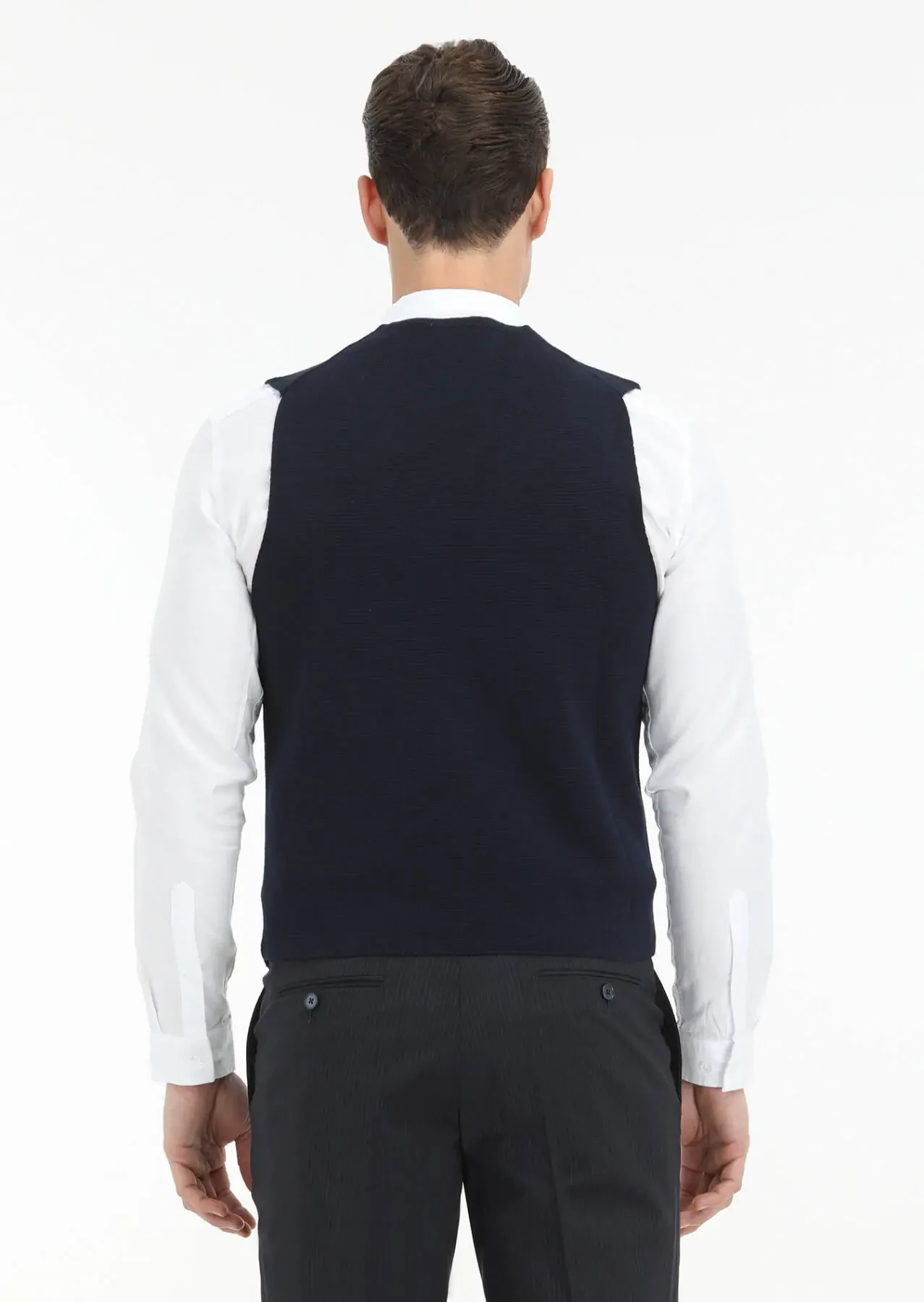 Navy Blue Regular Fit Casual Knitting Knit Vest