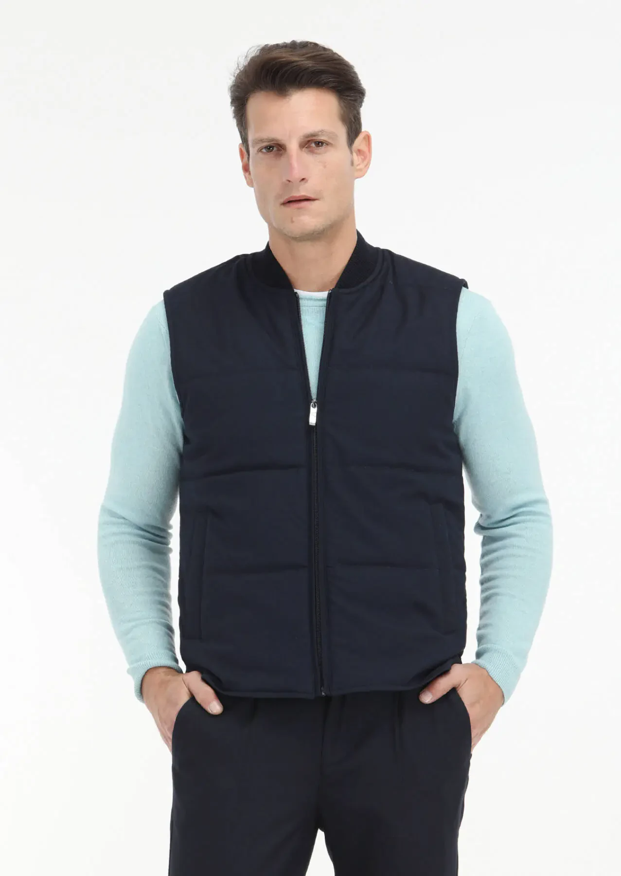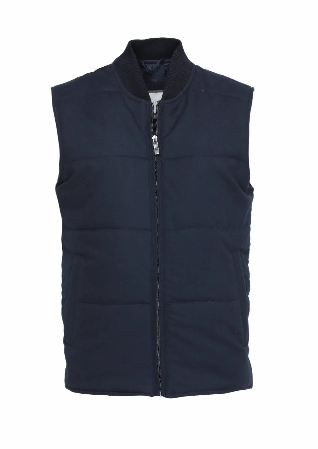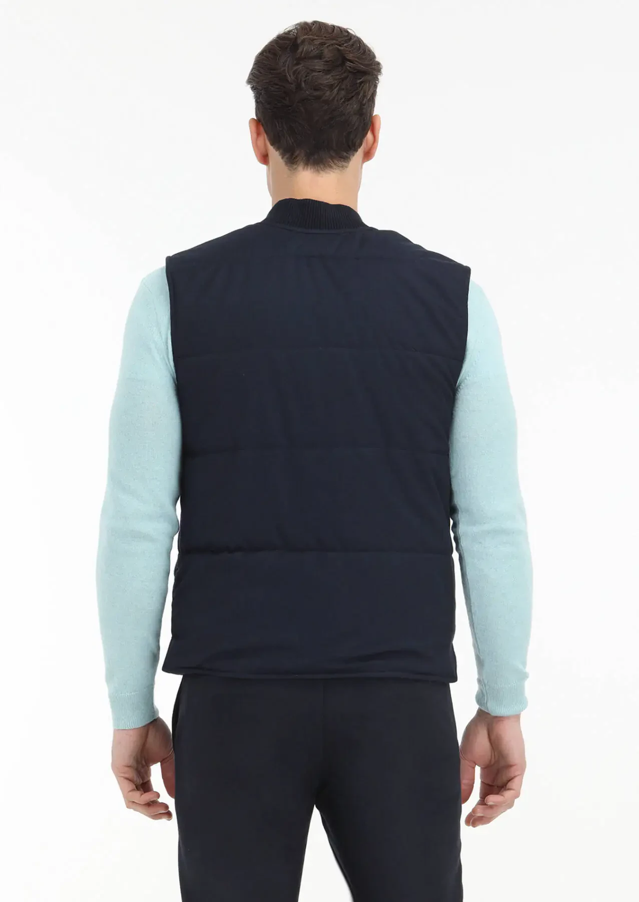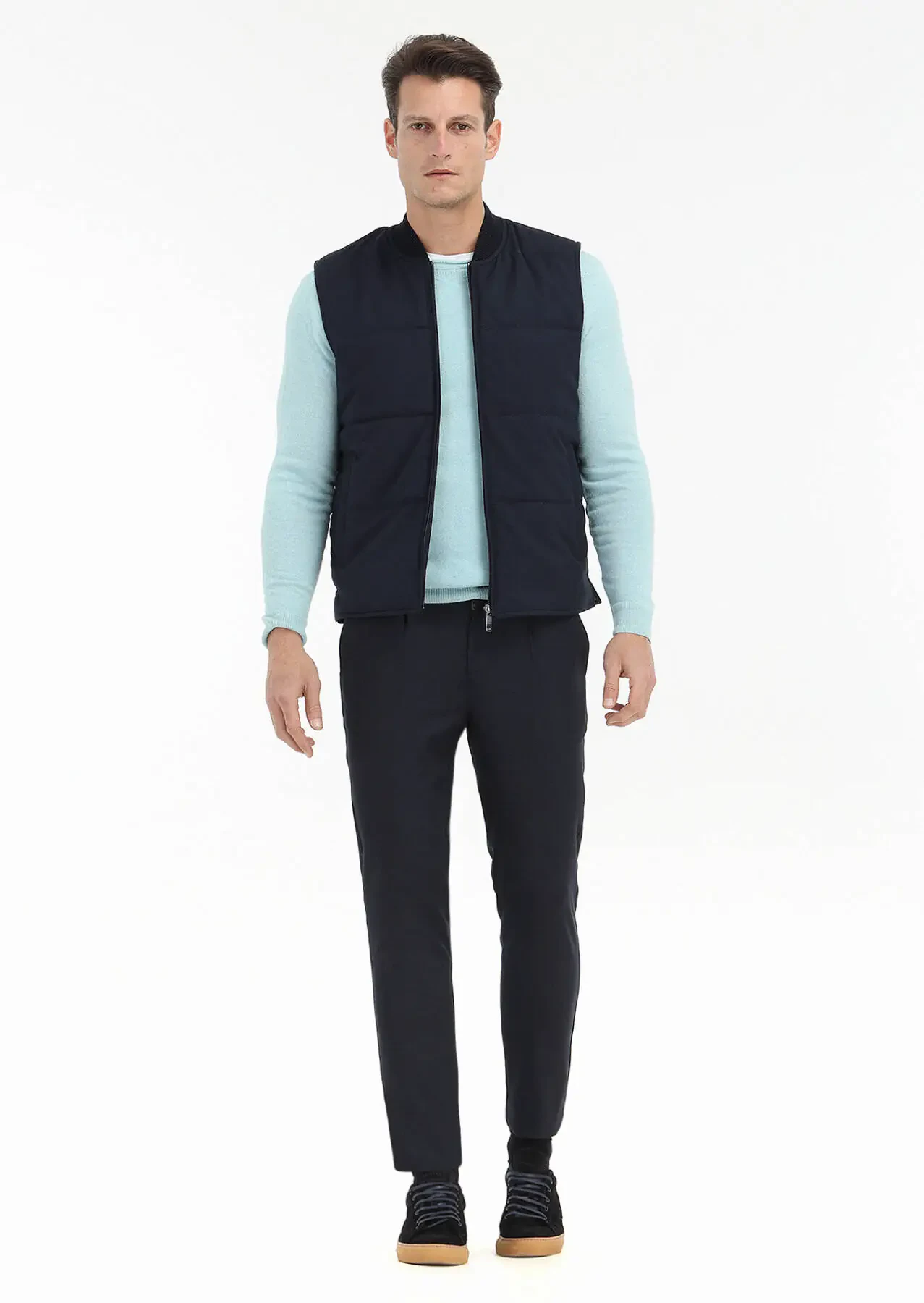 Navy Blue Regular Fit Mandarin Collar Casual Weaving Puffer Vest