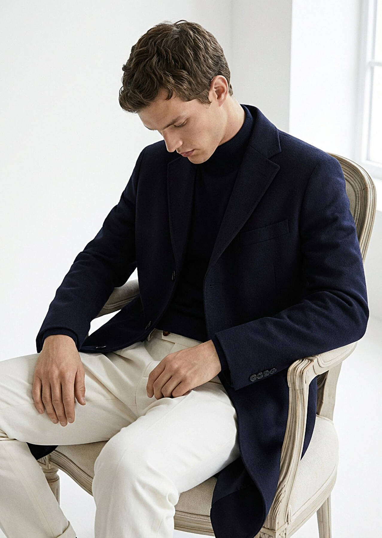 Model: Height: 190 cm, Chest: 94 cm, Waist: 76 cm, Size: 48