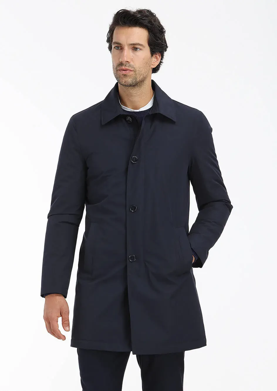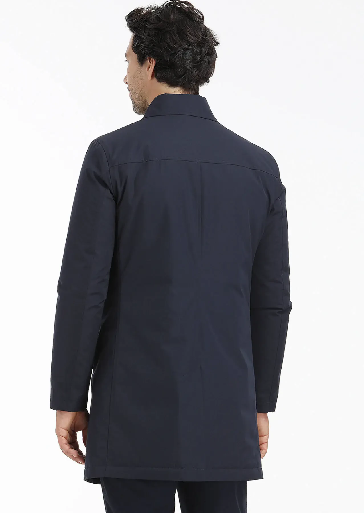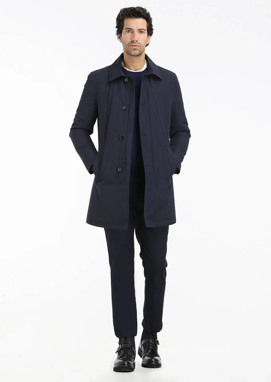 Navy Blue Regular Fit Shirt Collar Casual Weaving Rain Coat