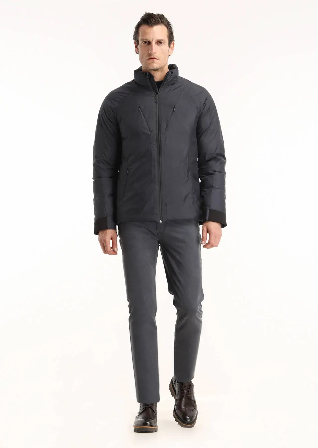 Navy Blue Regular Fit Turtleneck Casual Weaving Coat