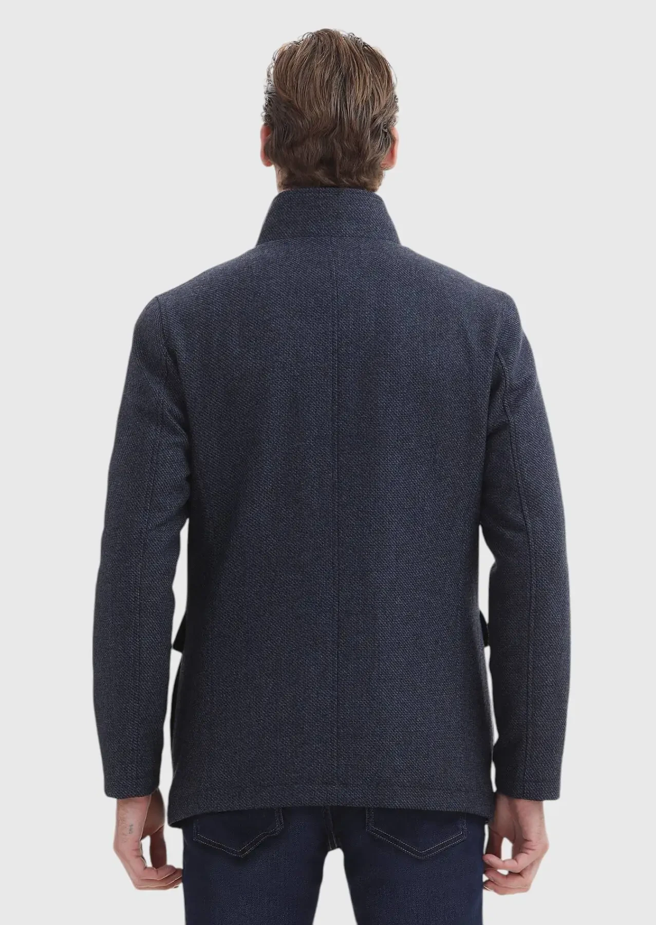 Navy Blue Regular Fit Turtleneck Casual Weaving Coat