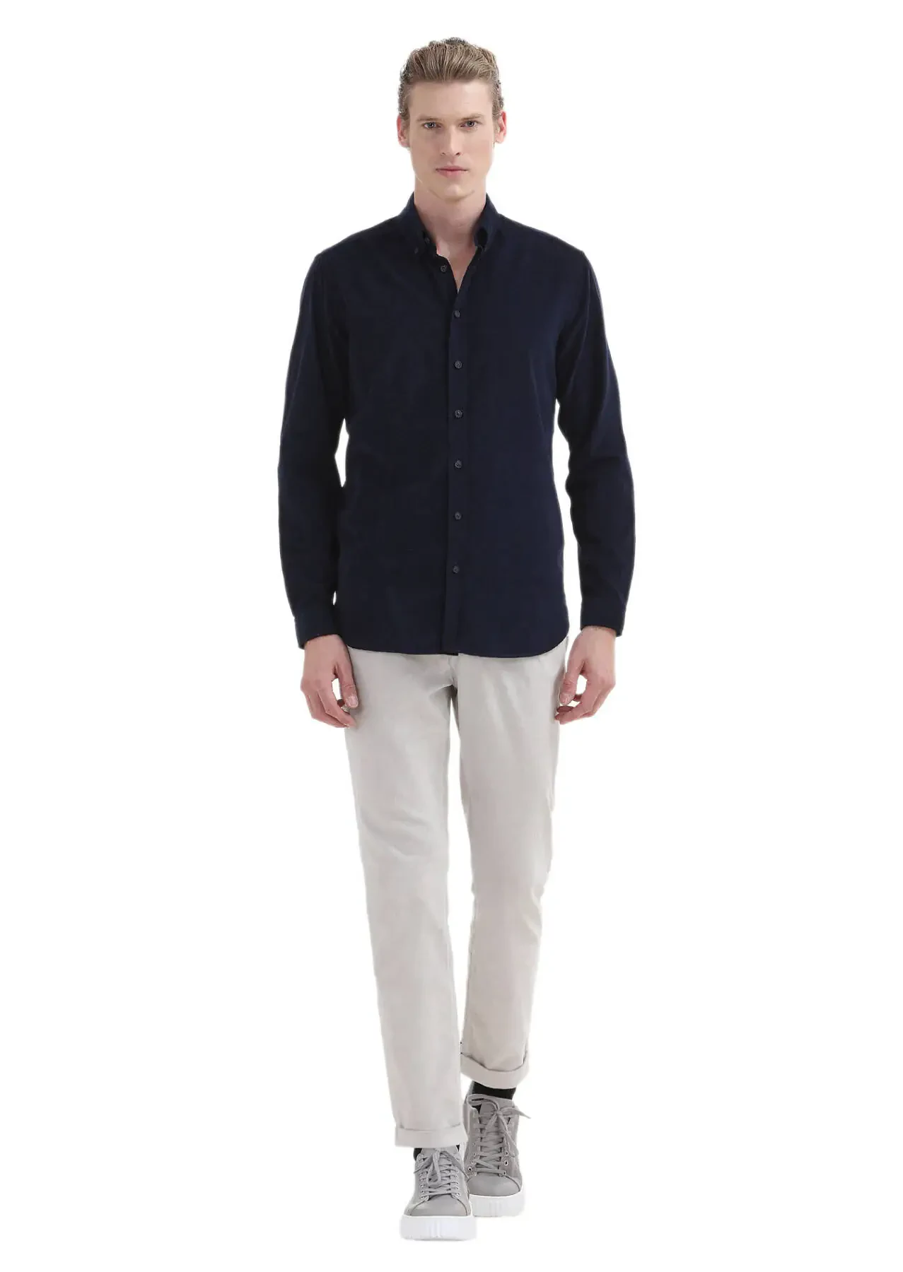 Navy Blue Ribbed Regular Fit Weaving Casual 100% Cotton Shirt