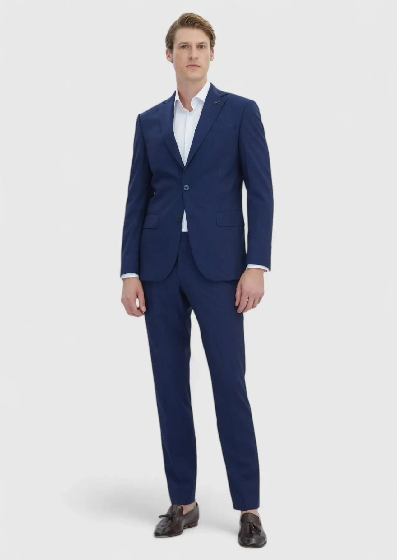 Navy Blue Striped Modern Fit 100% Wool Suit