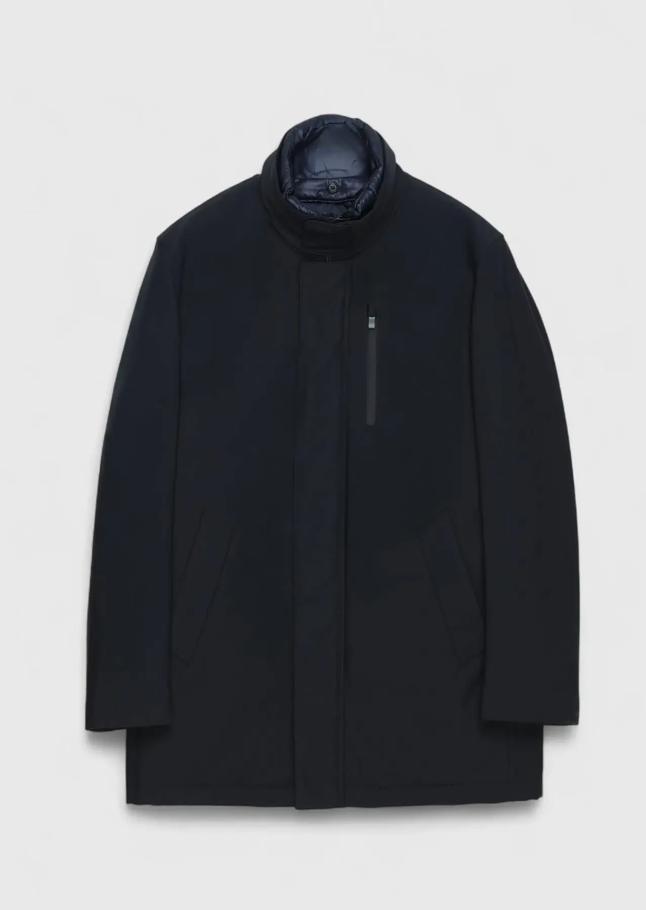Navy Blue Turtleneck Casual Weaving Coat - 1