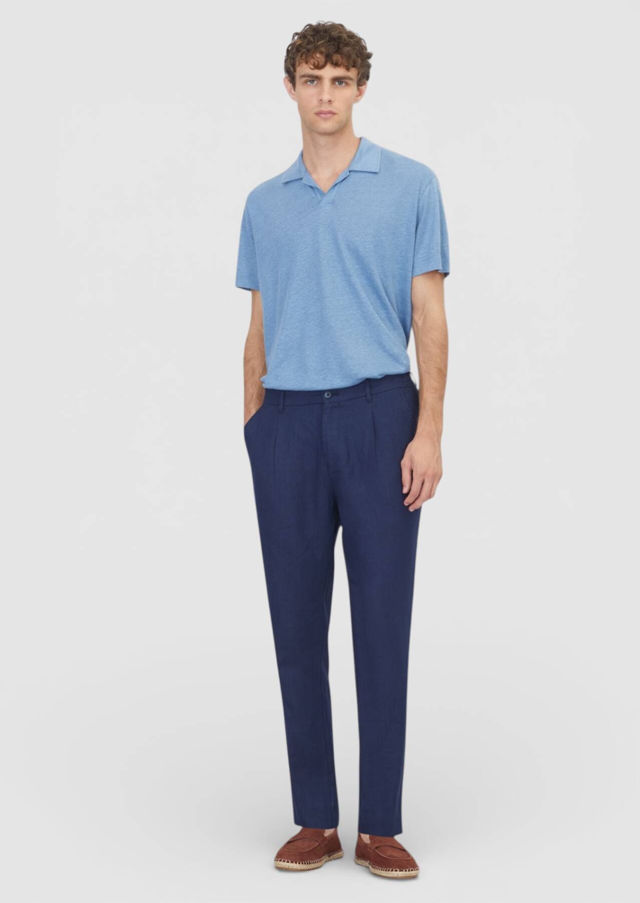 It is made of 100% natural linen fabric. It provides ideal comfort for the summer months with its breathable lightweight structure and rear waist elastic detail. It offers a modern look and fit with its pleat detail.