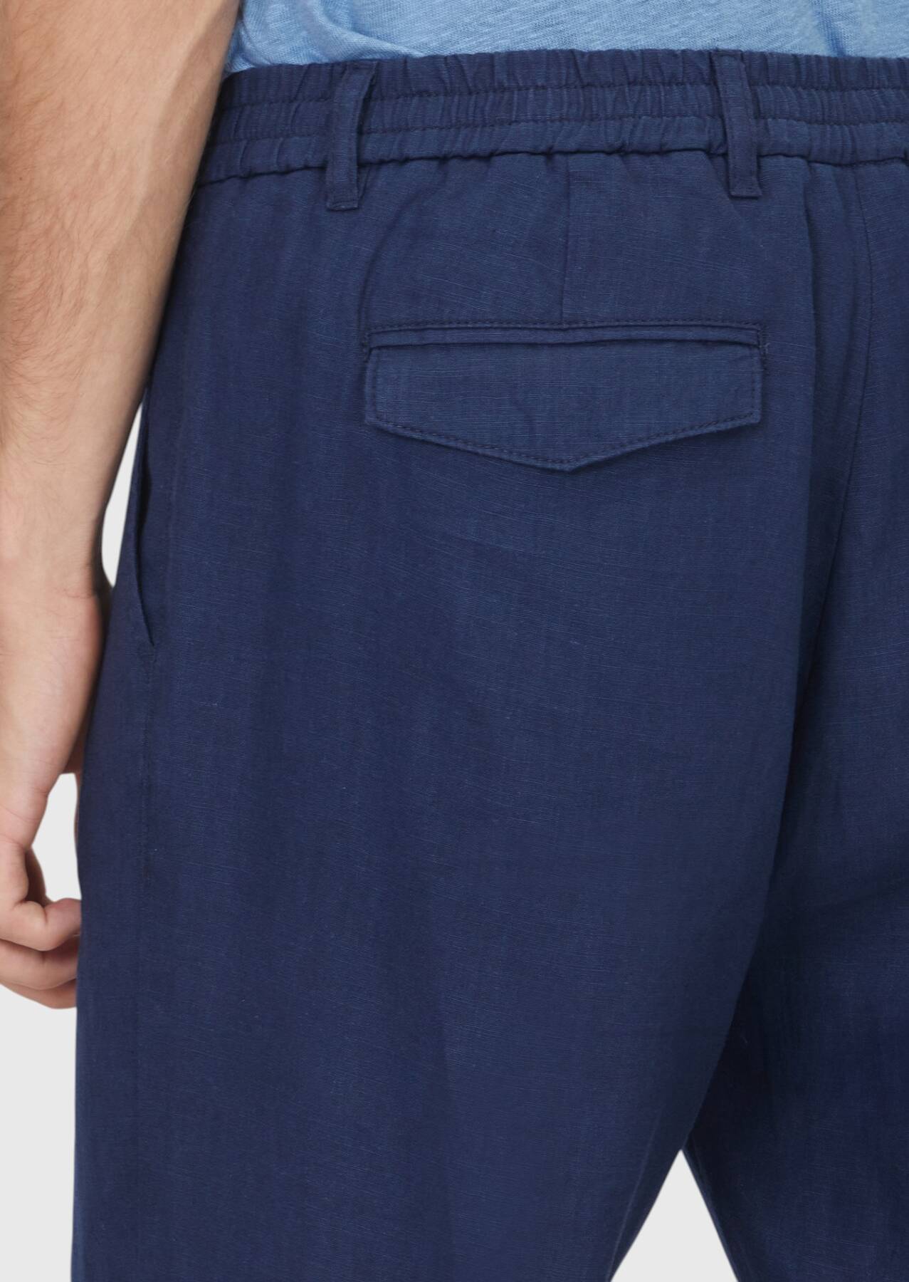 Navy Blue Weaving Jogging Fit Casual 100% Linen Trousers