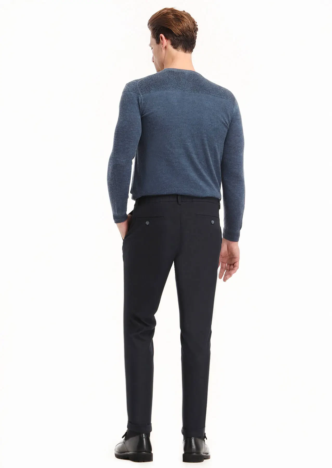 Navy Blue Weaving Jogging Fit Casual Trousers