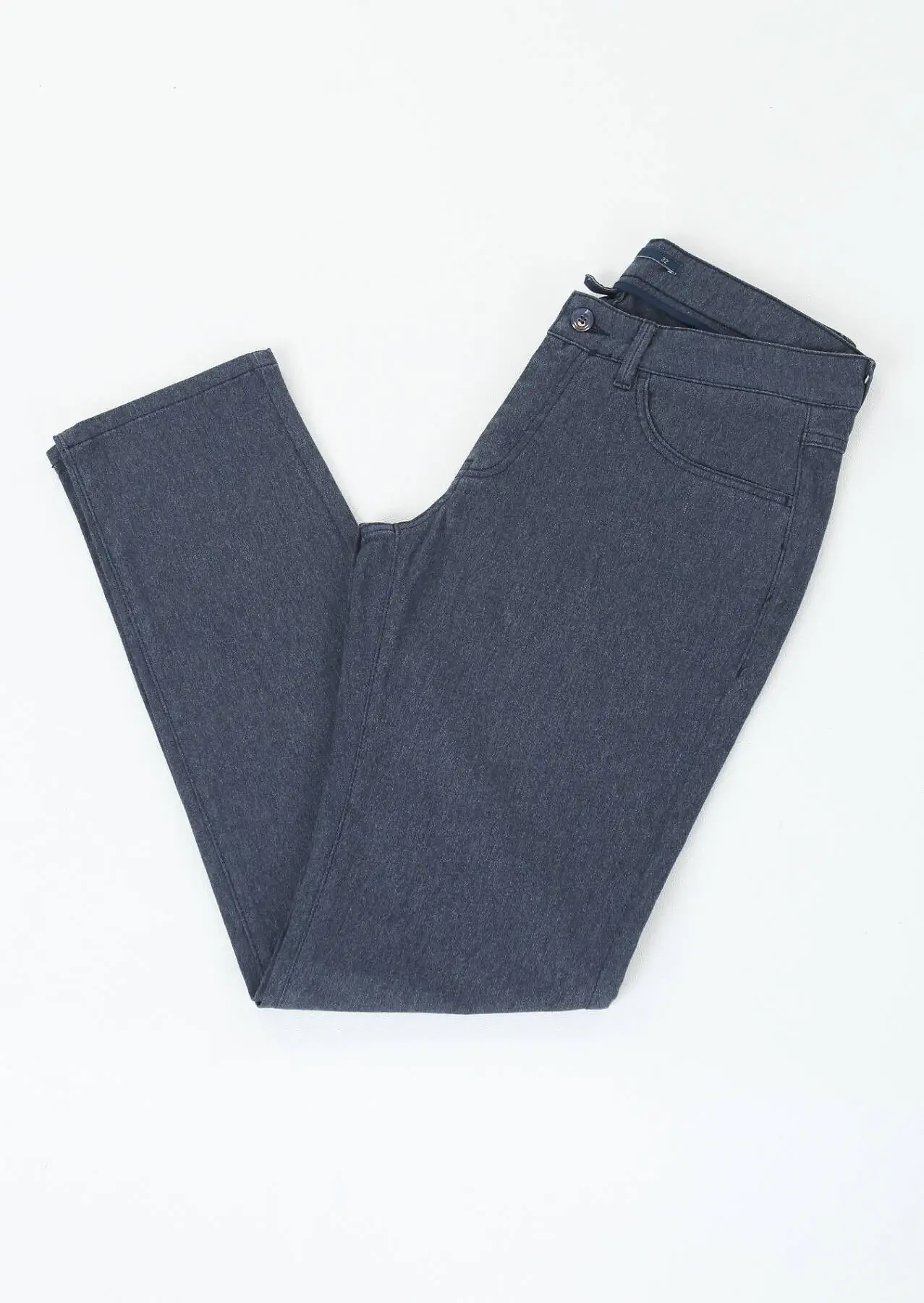 Navy Blue Weaving Slim Fit Casual Cotton Blended Trousers