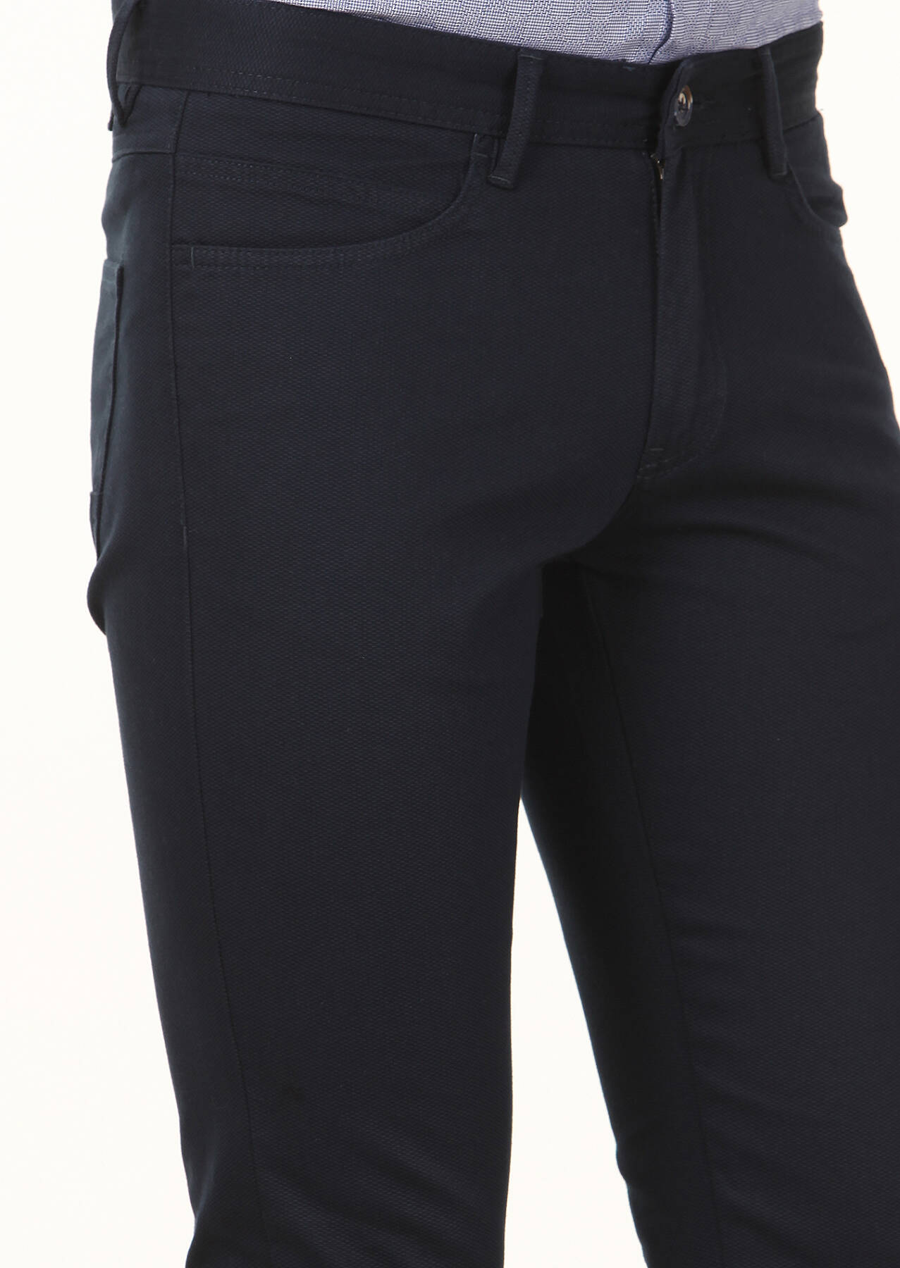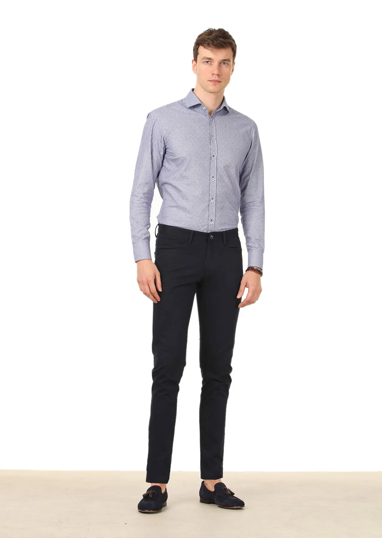 Navy Blue Weaving Slim Fit Casual Cotton Blended Trousers