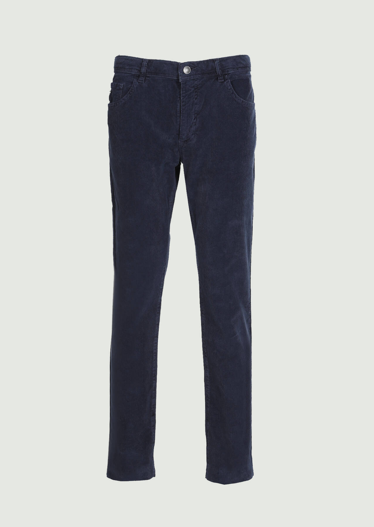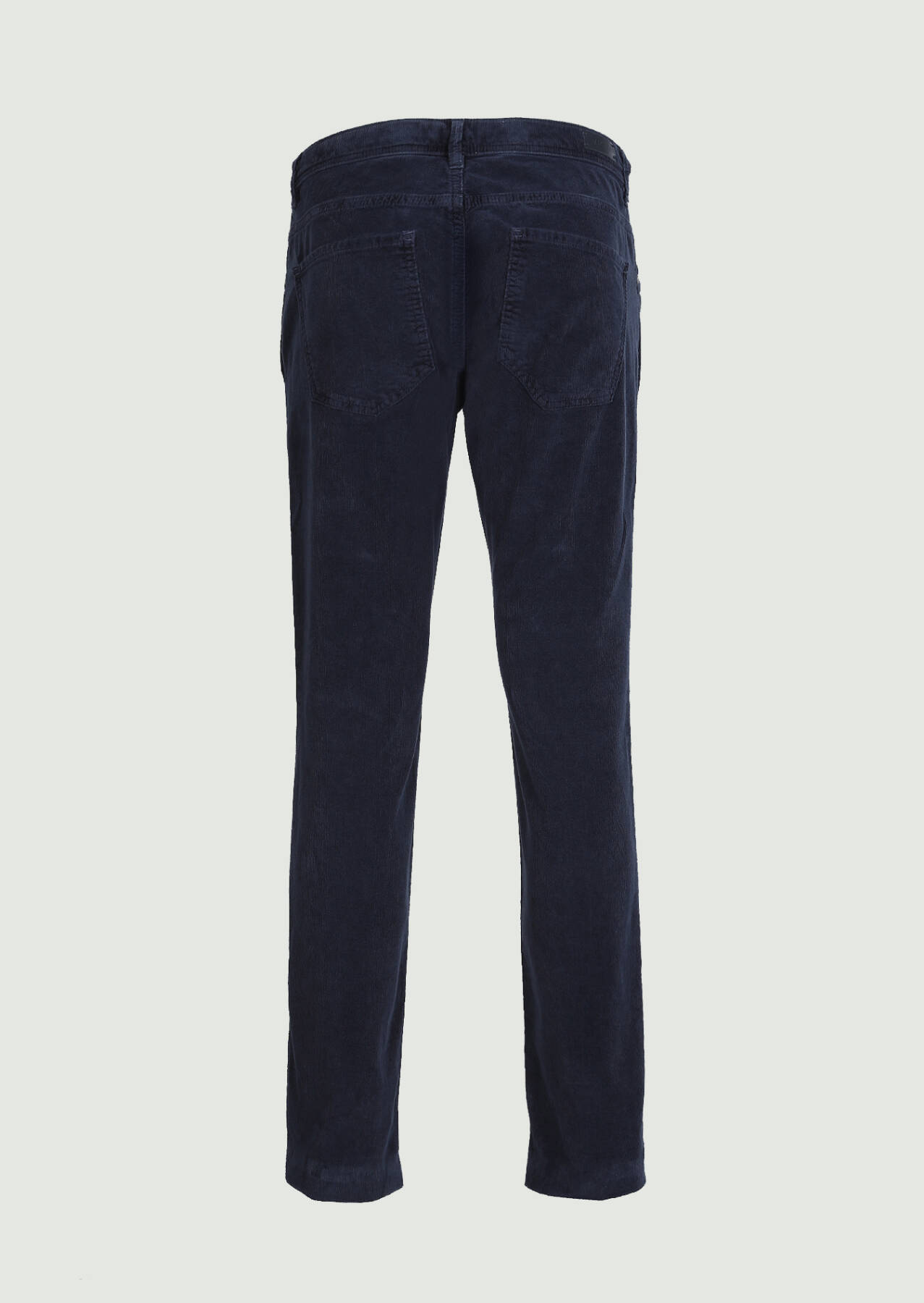 Navy Blue Weaving Slim Fit Casual Cotton Blended Trousers