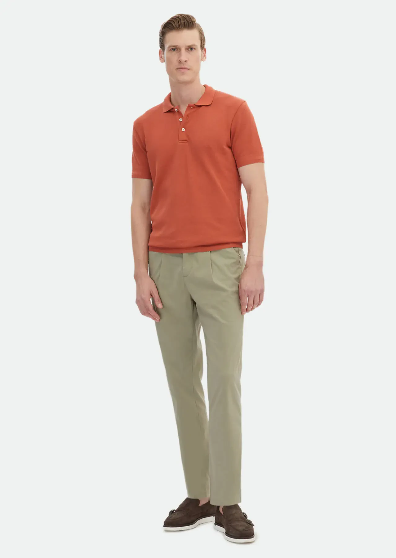 Orange Jacquard Polo Neck 100% Cotton T-Shirt