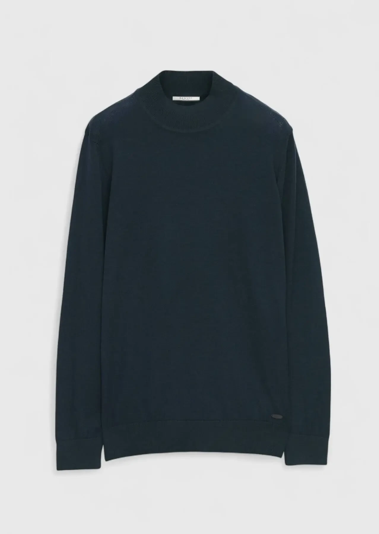 Petrol Bato Yaka Düz Örgü Yün Karışımlı Triko Kazak