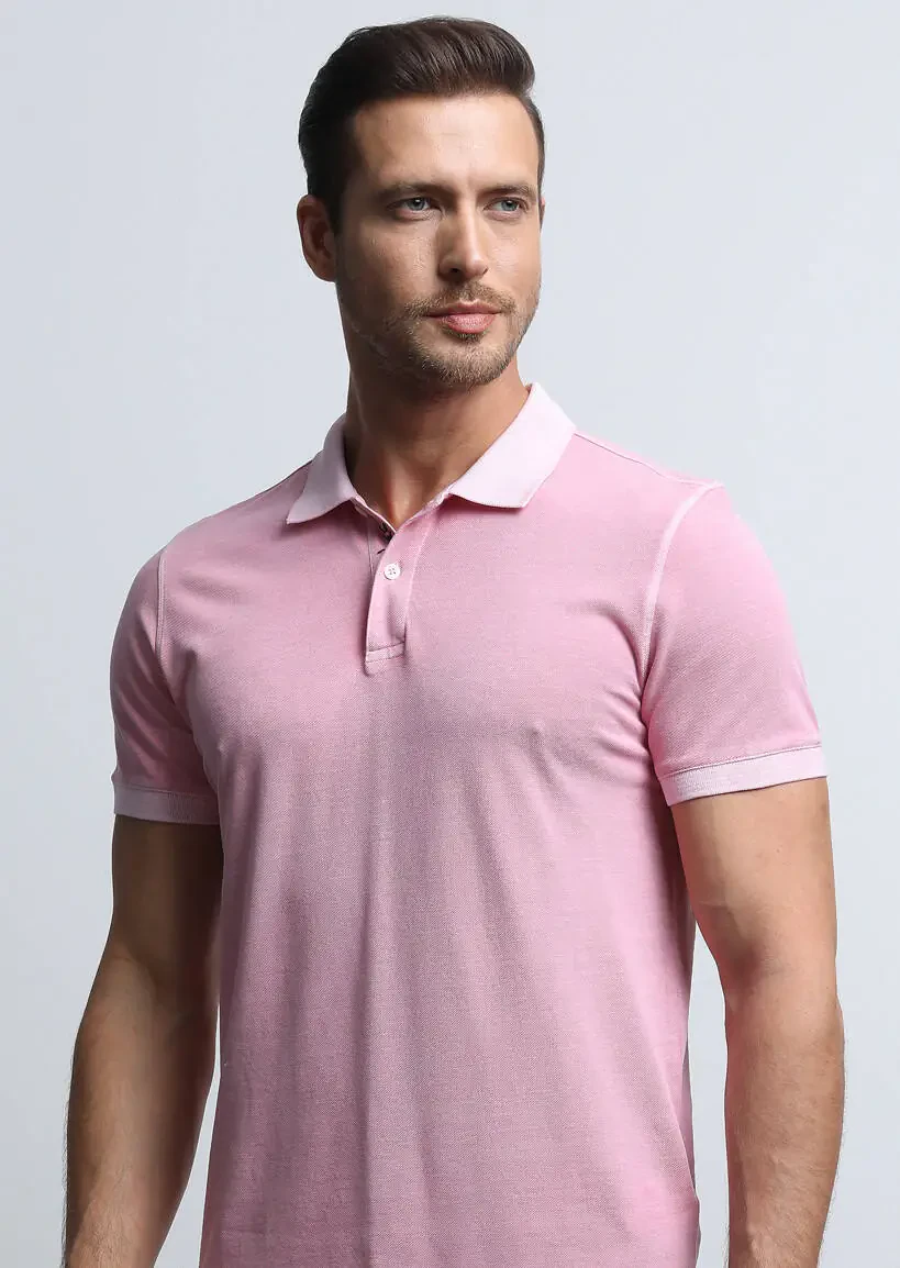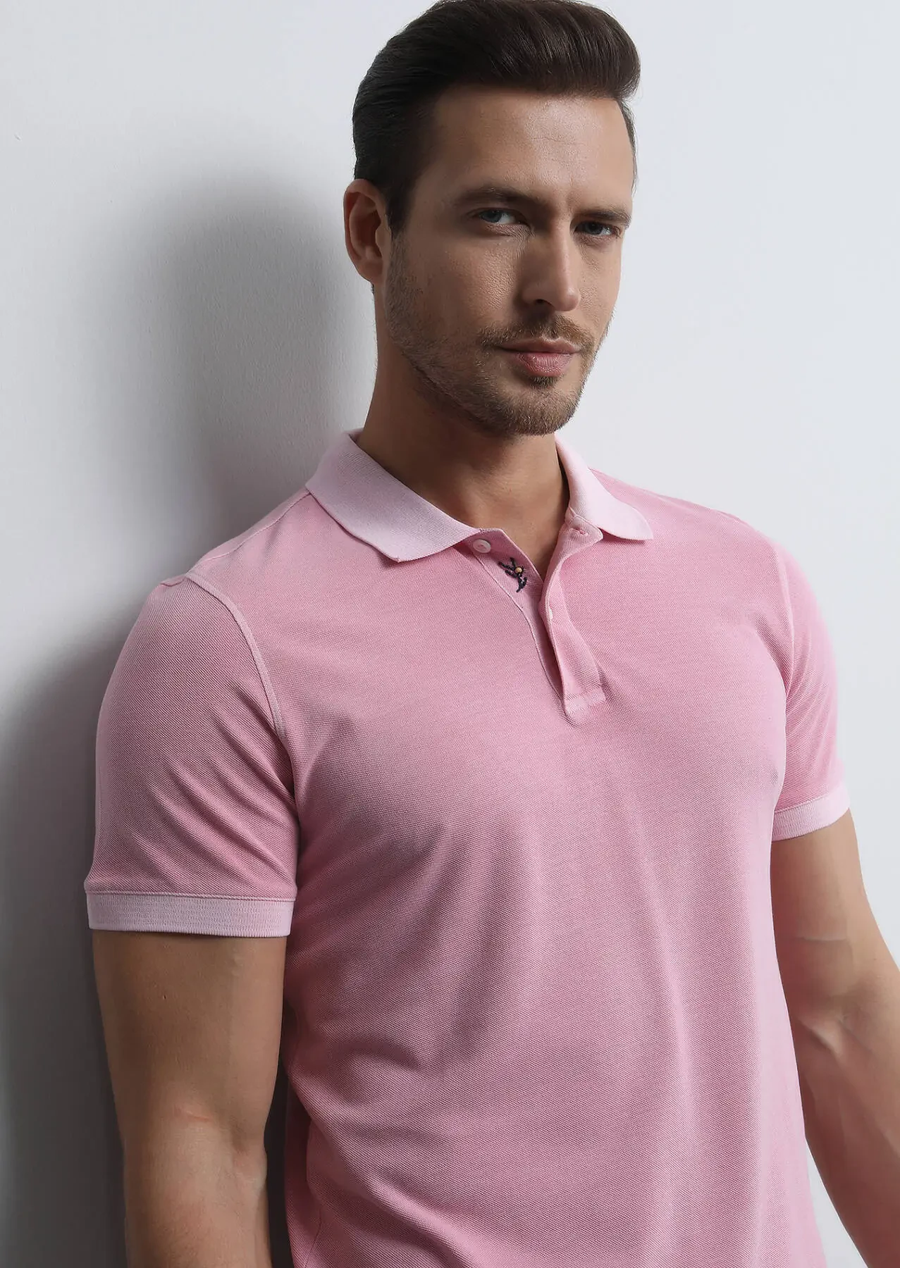 Pink Jacquard Polo Neck 100% Cotton T-Shirt