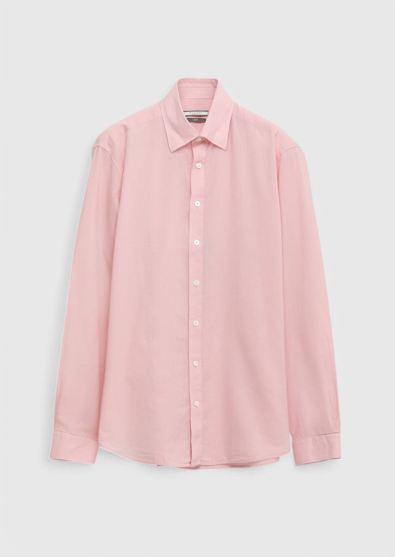 Pink Plain Casual Fit Long Weaving Casual 100% Cotton Shirt