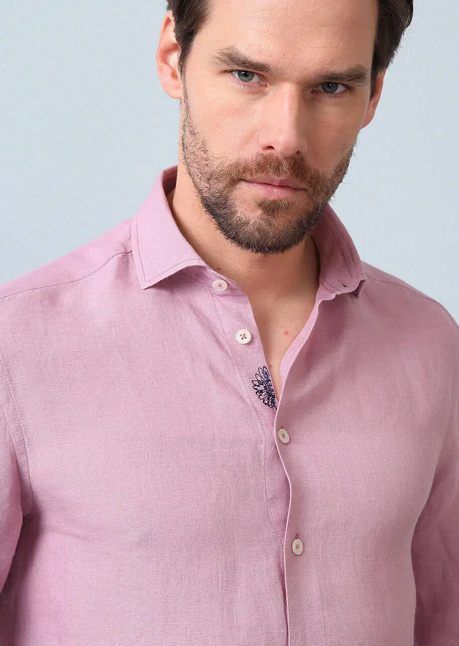 Pink Plain Regular Fit Weaving Casual 100% Linen Shirt