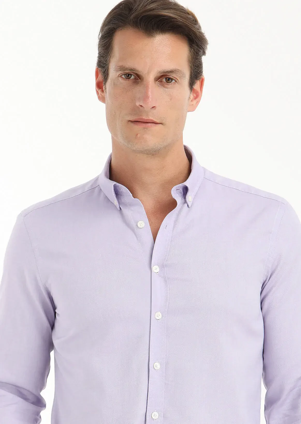 Purple Plain Slim Fit Weaving Casual 100% Cotton Shirt
