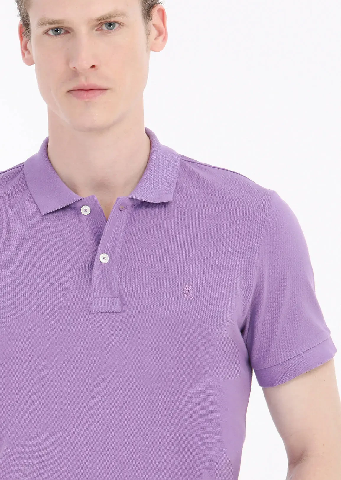 Purple Printed Polo Neck 100% Cotton T-Shirt