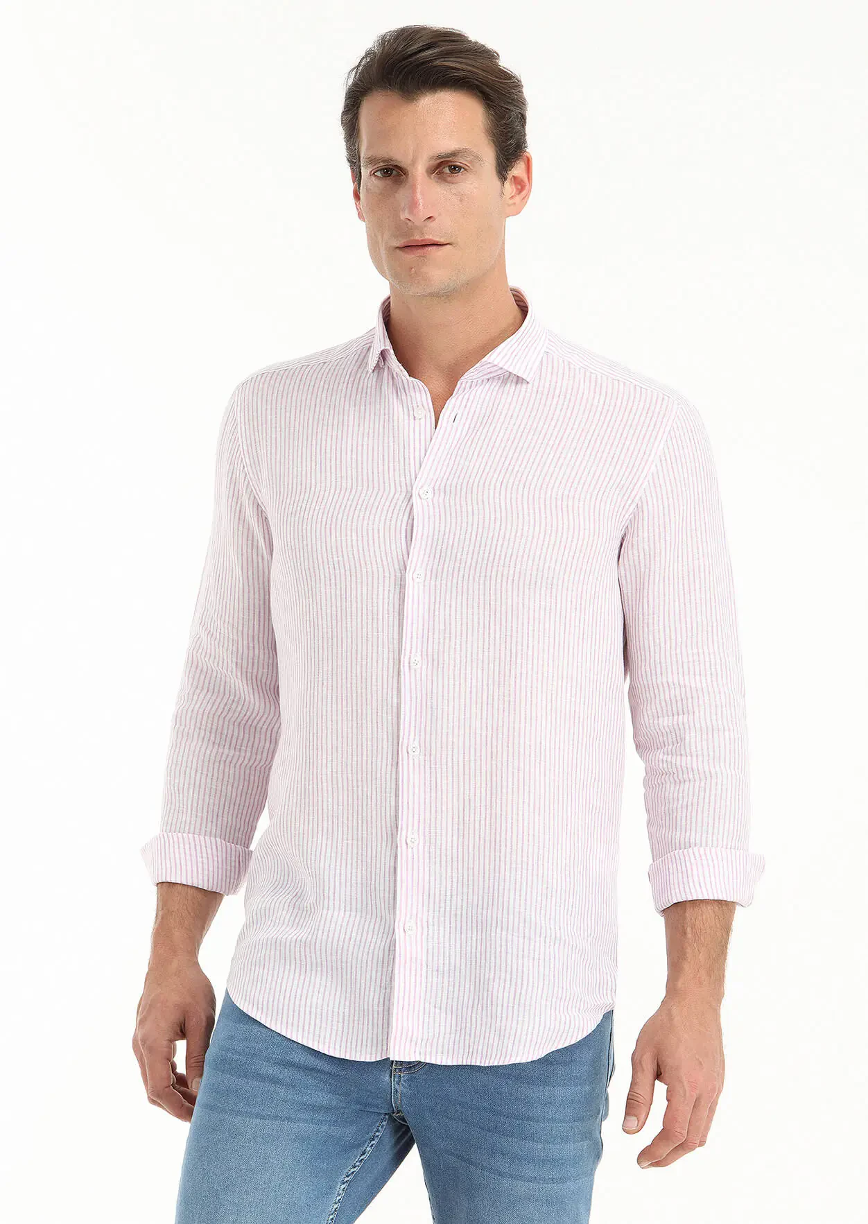Purple Striped Regular Fit Weaving Casual 100% Linen Shirt