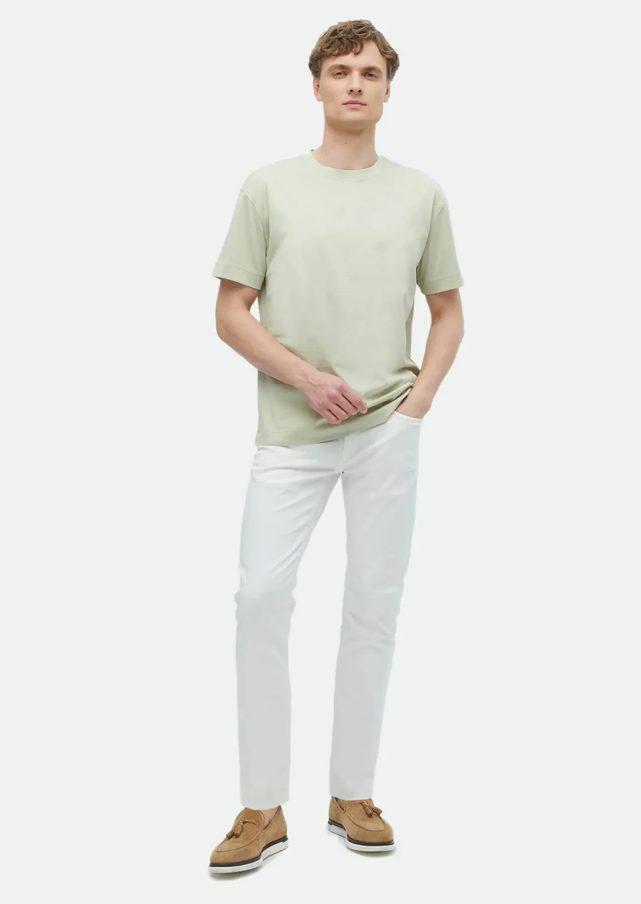 Reseda Green Plain Crew Neck 100% Cotton T-Shirt