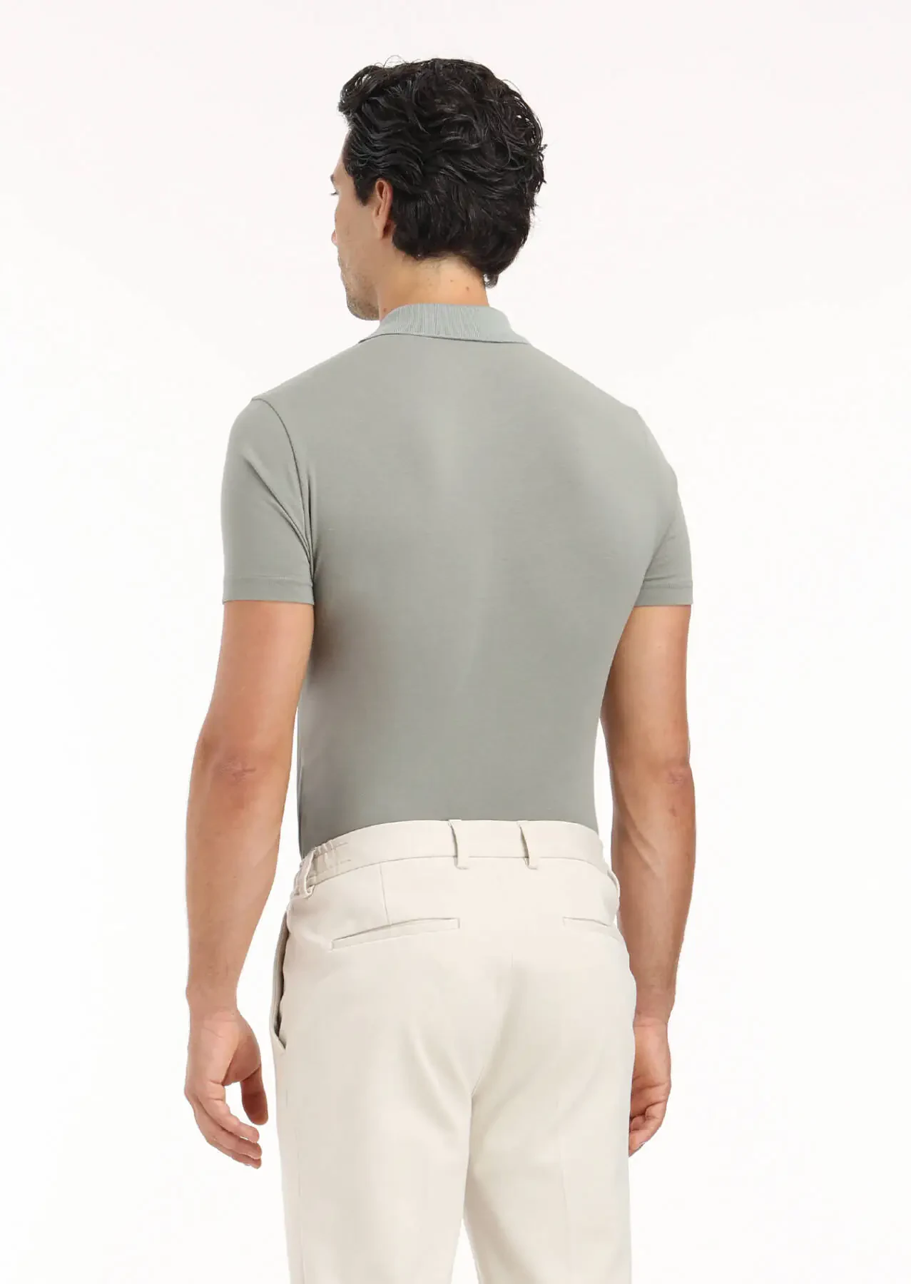 Reseda Green Plain Polo Neck Cotton Blended T-Shirt