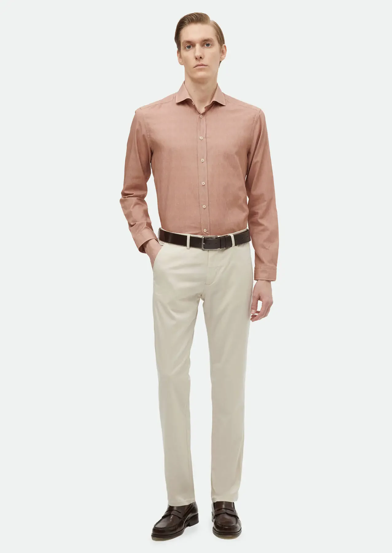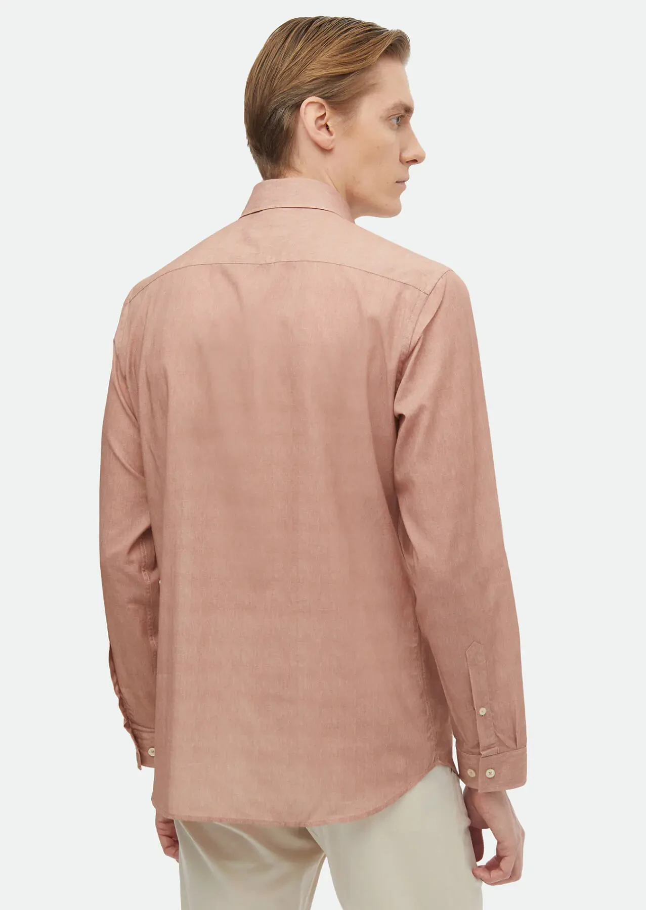 Salmon Printed Regular Fit Weaving Casual 100% Cotton Shirt