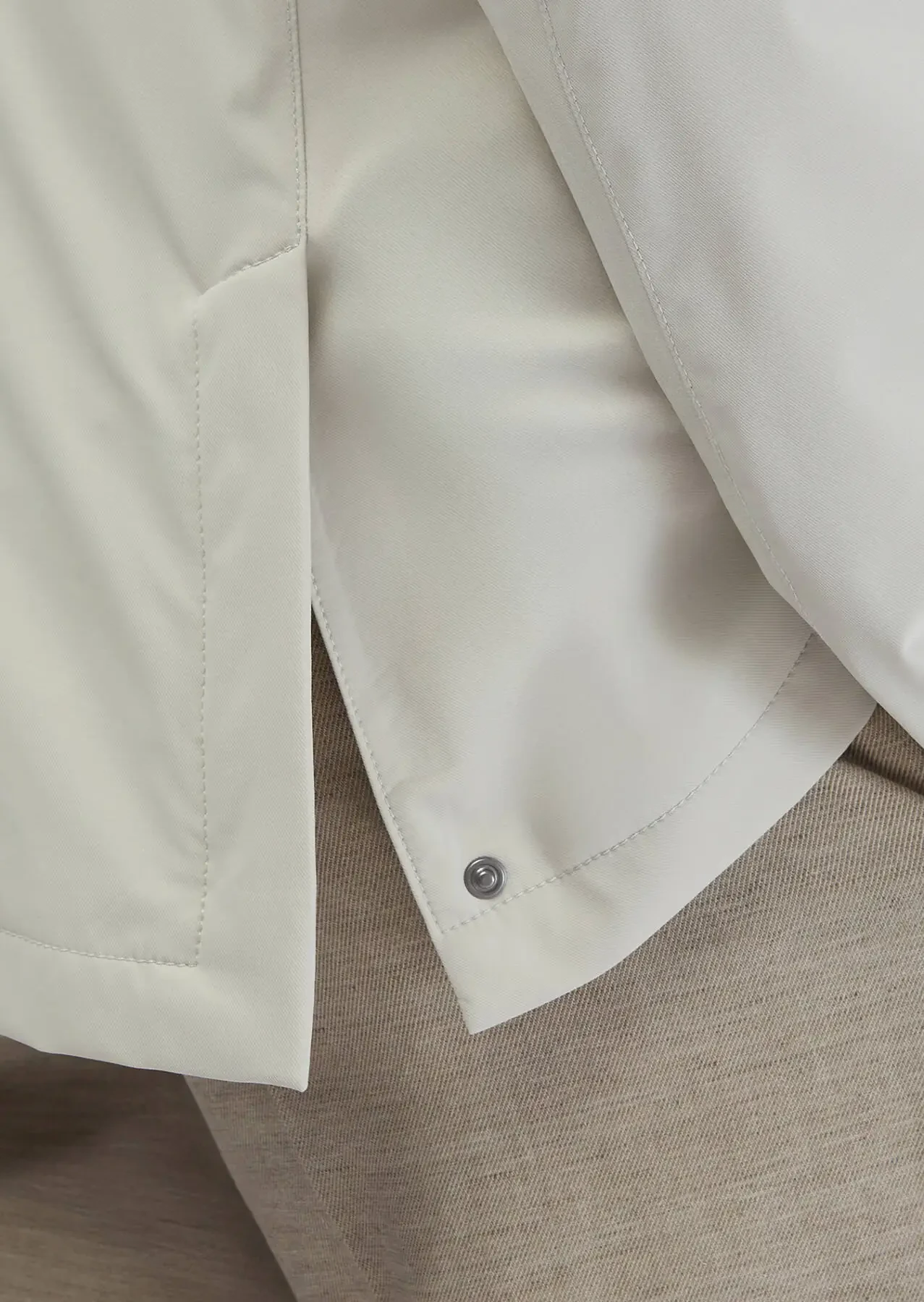 The transition season is ideal as an outerwear alternative. It is made of durable technical fabrics with the appearance of a blazer. The dominant collar and hidden zipper detail add a stylish and functional atmosphere.