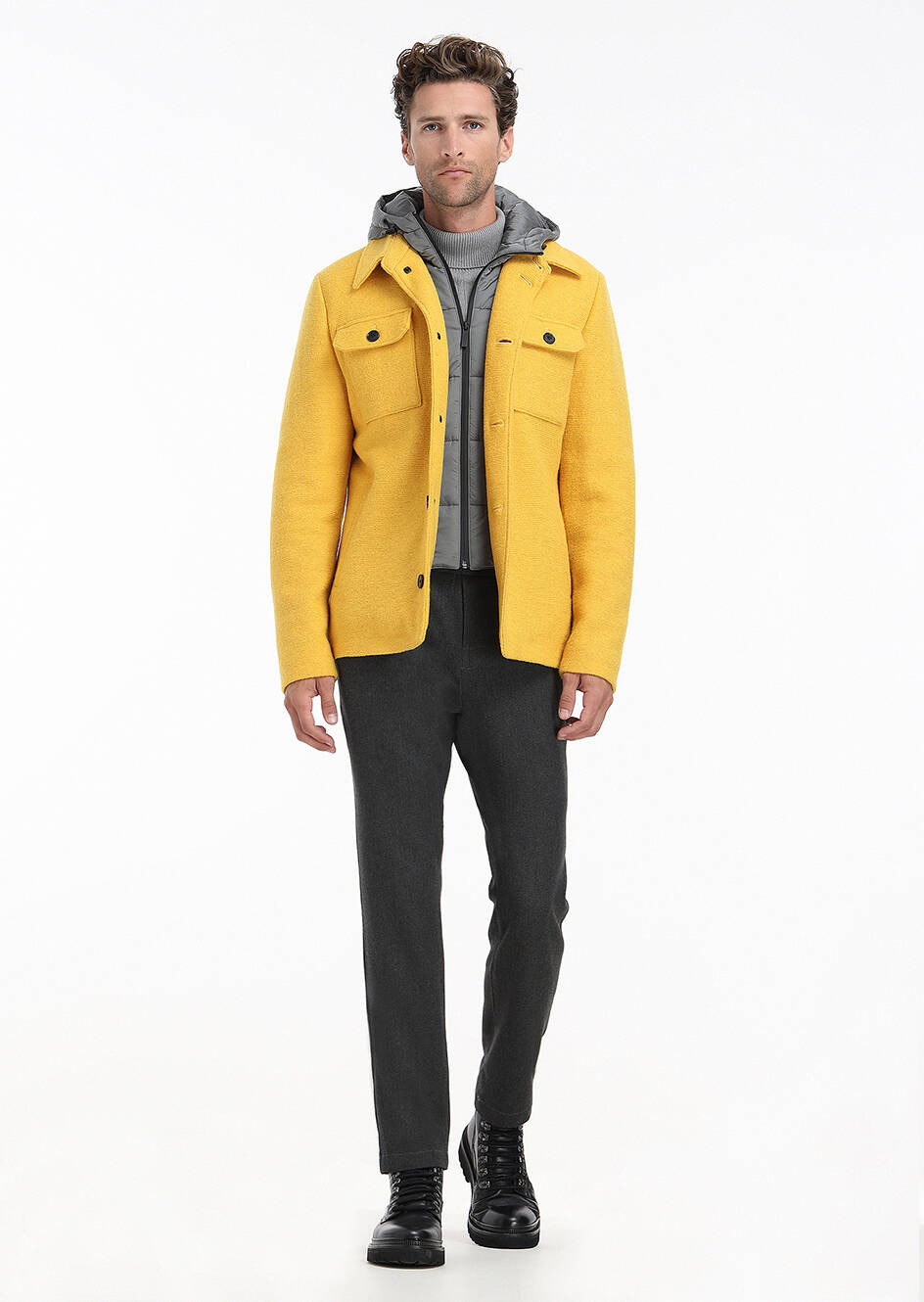 Sarı Regular Fit Gömlek Yaka Casual Örme Mont
