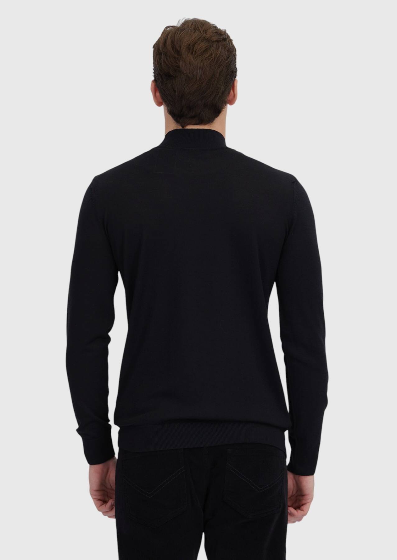 Siyah Bato Yaka Düz Örgü Yün Karışımlı Triko Kazak