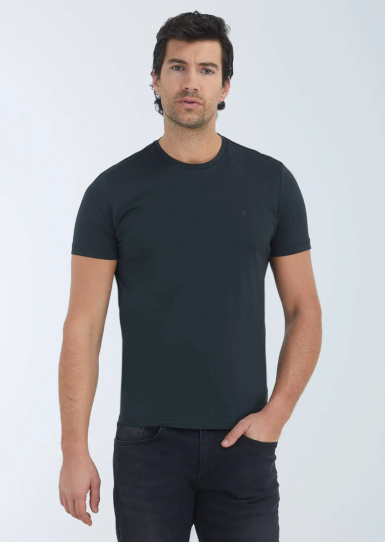 Siyah Düz Bisiklet Yaka %100 Pamuk T-Shirt
